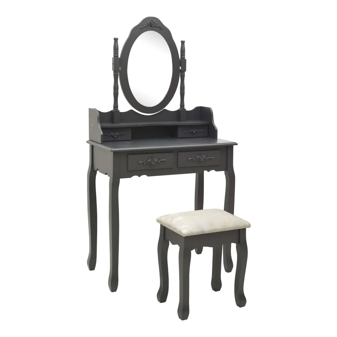 Ensemble de coiffeuse avec tabouret Gris 75x69x140 cm Paulownia