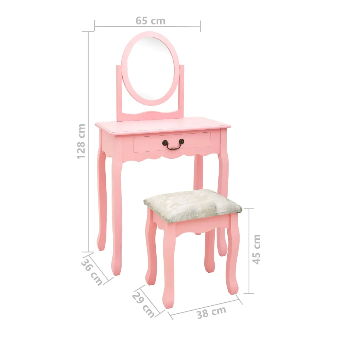 Coiffeuse et tabouret Rose 65x36x128 cm Bois de paulownia MDF
