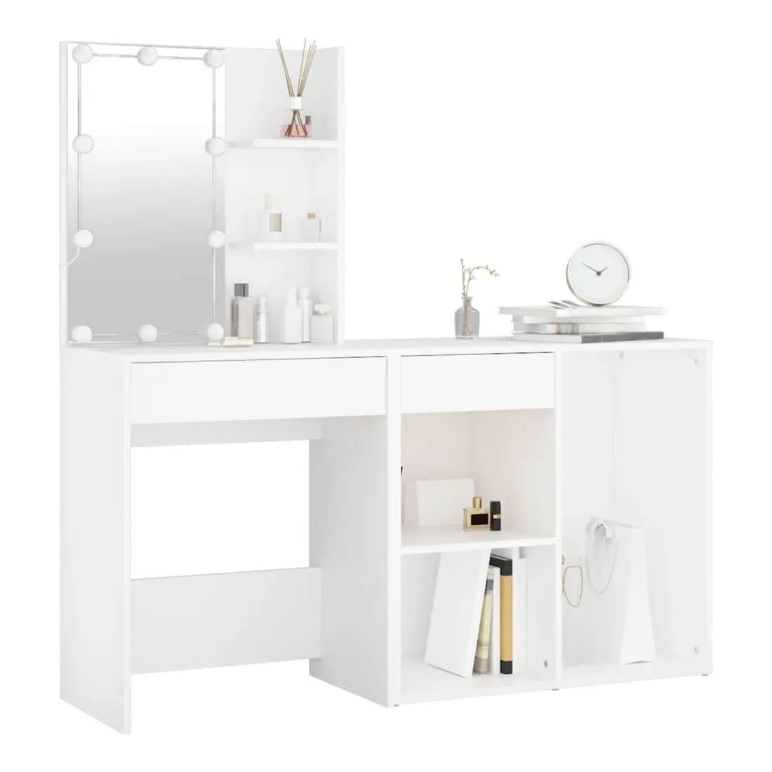 Coiffeuse à LED avec armoire Blanc Bois d'ingénierie