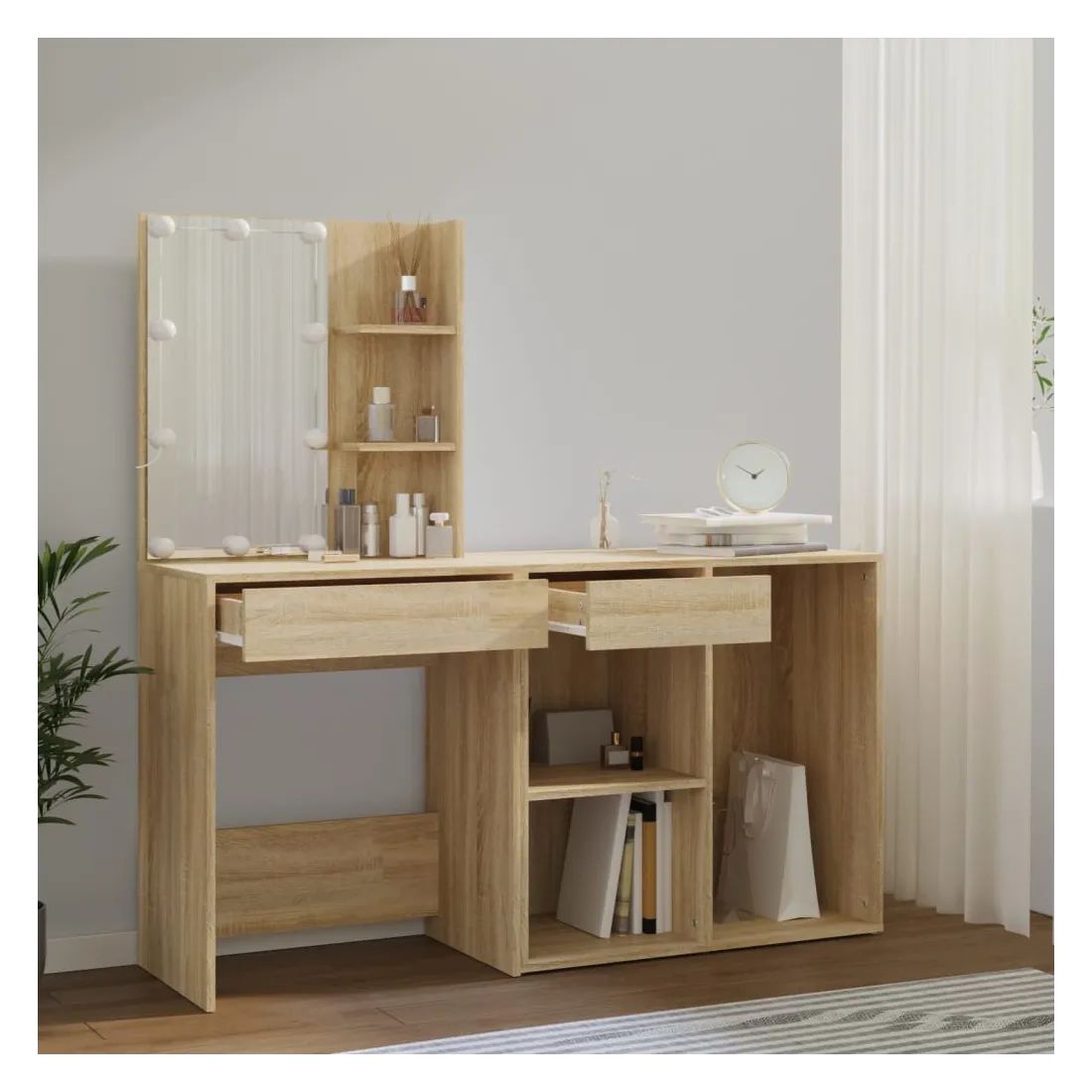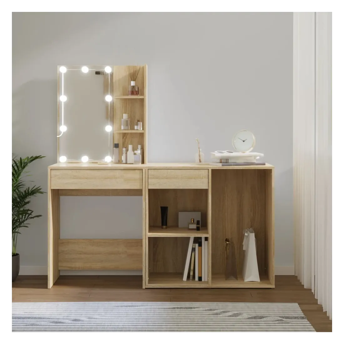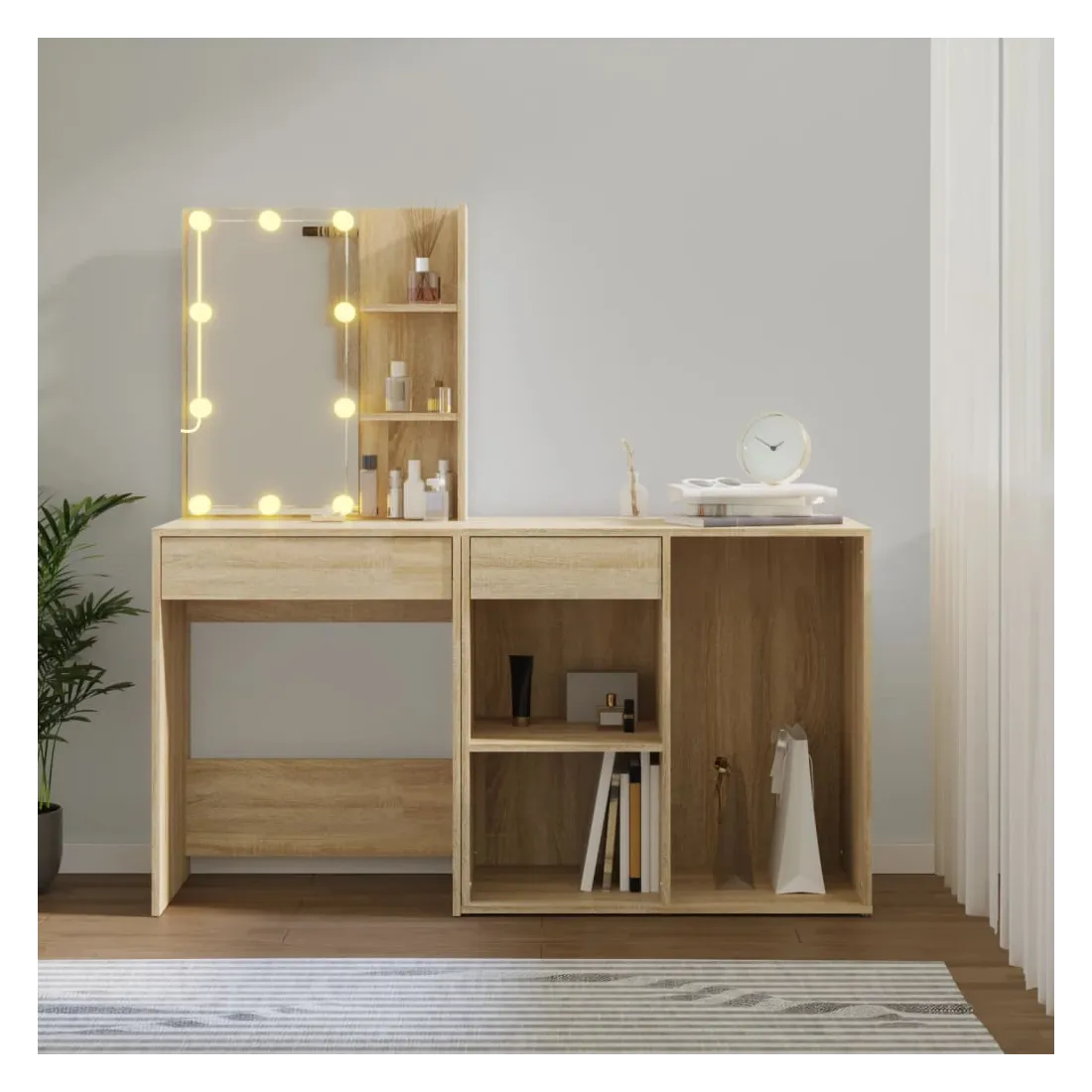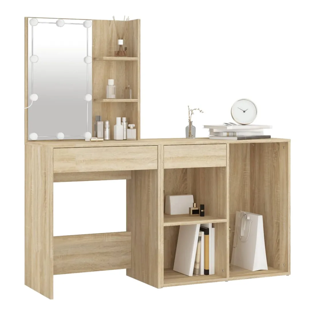Coiffeuse à LED avec armoire Chêne sonoma Bois d'ingénierie