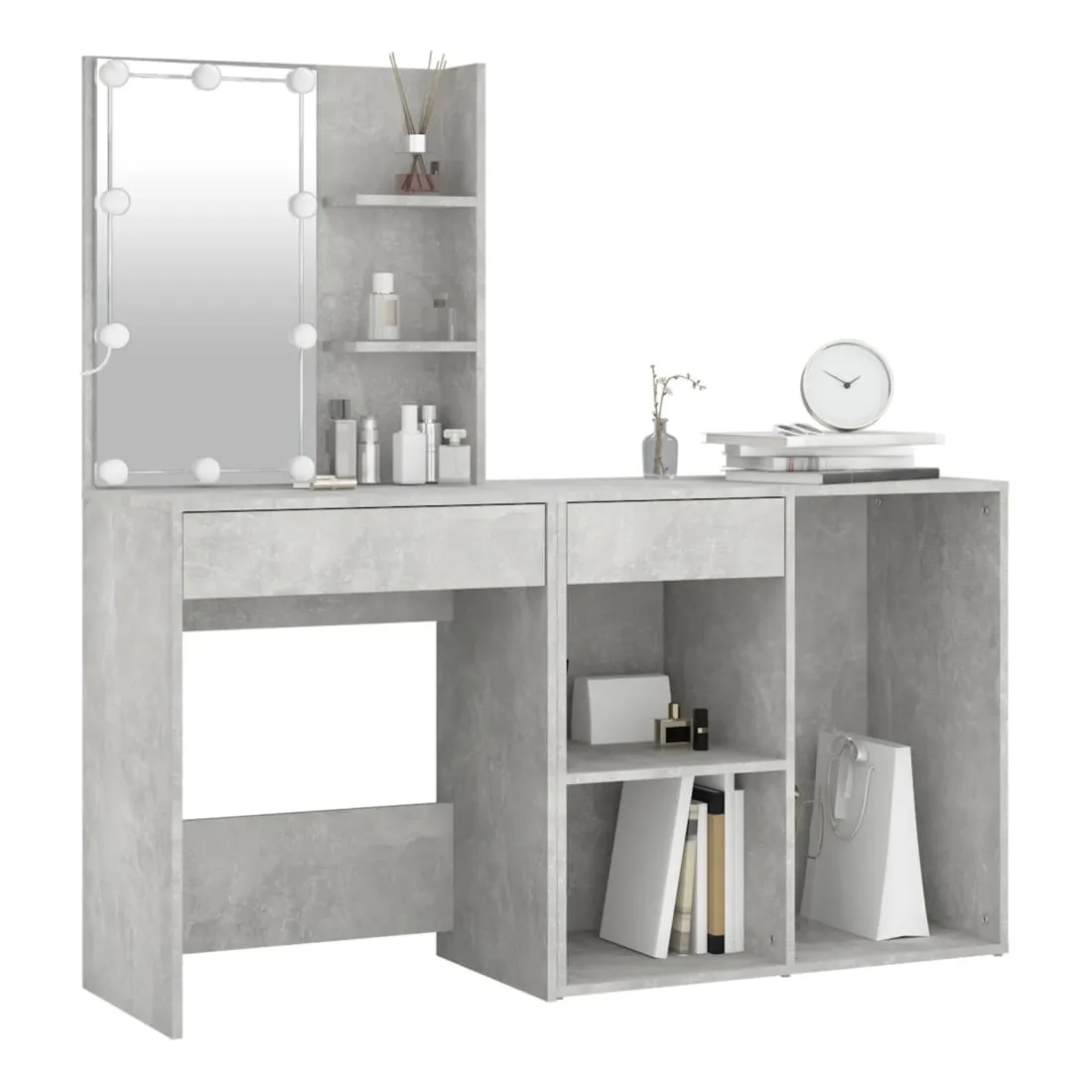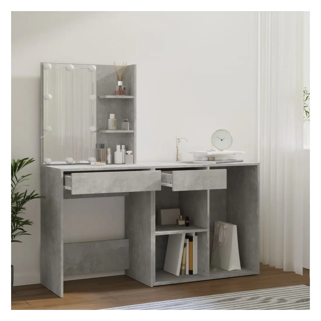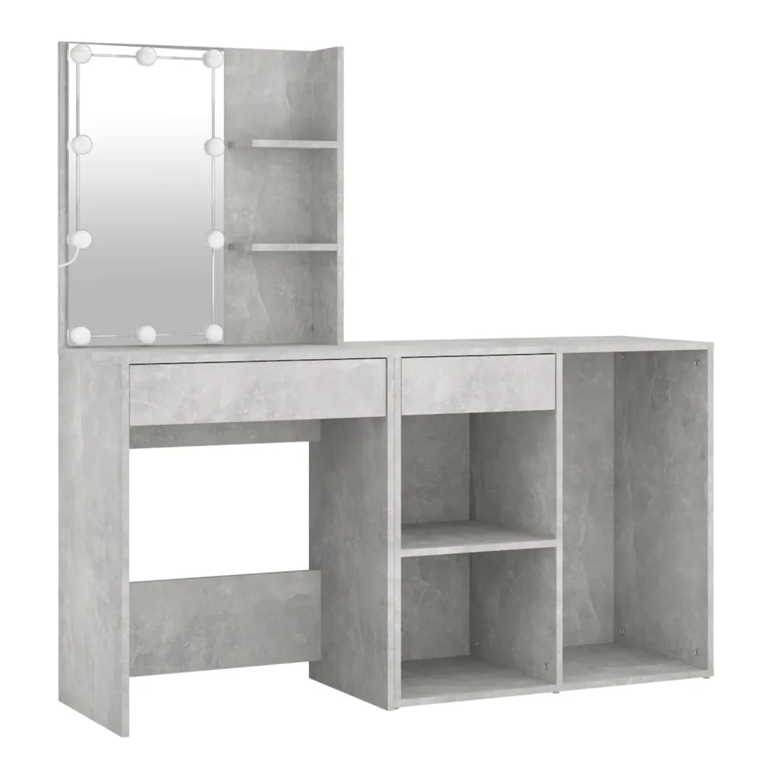 Coiffeuse à LED vraiment simple mais fonctionnelle avec armoire, s'adapte parfaitement à différents types d'intérieurs. Matériau durable : la coiffeuse à LED avec armoire est fabriquée en bois d'ingénierie. Le bois d'ingénierie est d'une qualité exceptionnelle avec une surface lisse et se caractérise également par sa solidité, stabilité et résistance à l'humidité.Lumière LED : la table cosmétique avec armoire dispose d'ampoules LED avec USB, qui sont faciles à changer de mode du blanc chaud au blanc froid. Les ampoules LED autour du miroir illuminent également votre beauté.Grand espace de rangement : la coiffeuse avec armoire de rangement offre un espace de rangement spacieux avec des compartiments, parfait pour organiser votre maquillage, vos accessoires, vos sacs et vos essentiels de beauté. Avertissement :Afin d'éviter qu'il ne bascule, ce produit doit être utilisé avec le dispositif de fixation murale fourni. Remarque :Chaque produit est livré avec un manuel de montage dans la boîte pour un montage facile.
