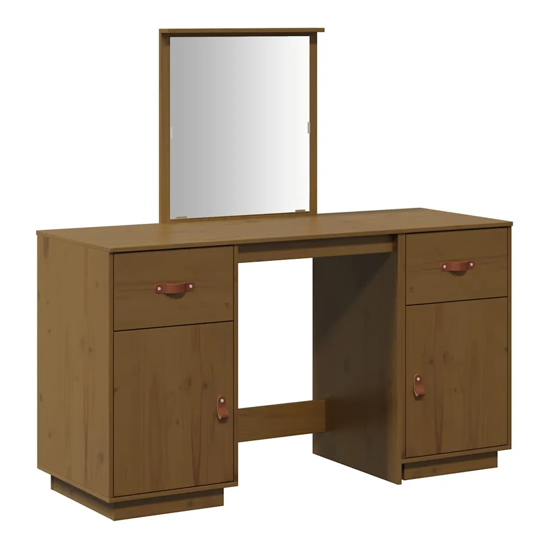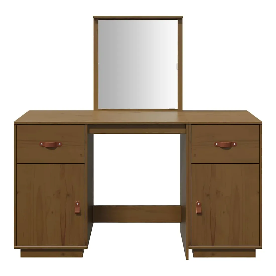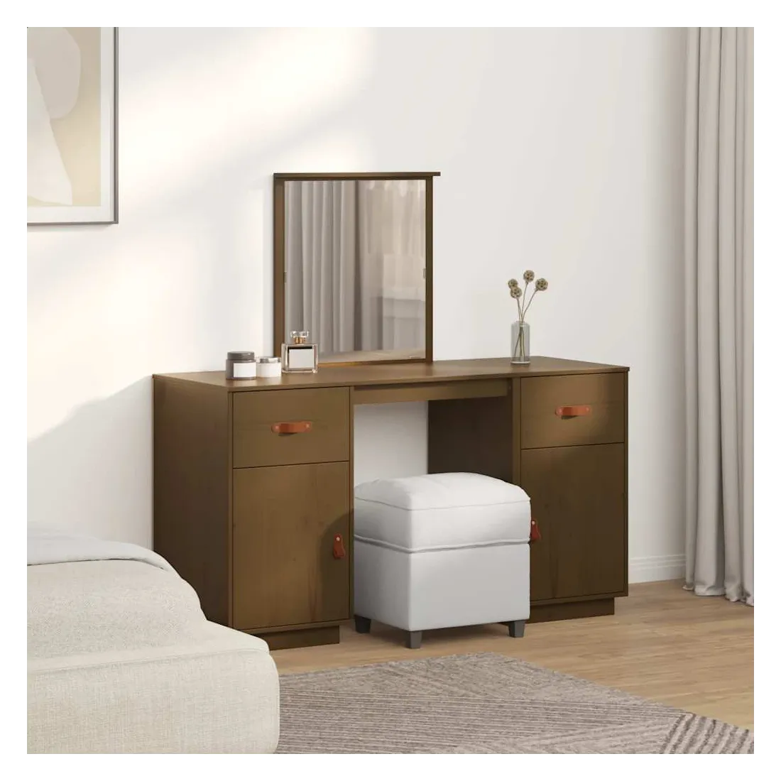 Ensemble de coiffeuse et miroir Marron miel Bois de pin solide