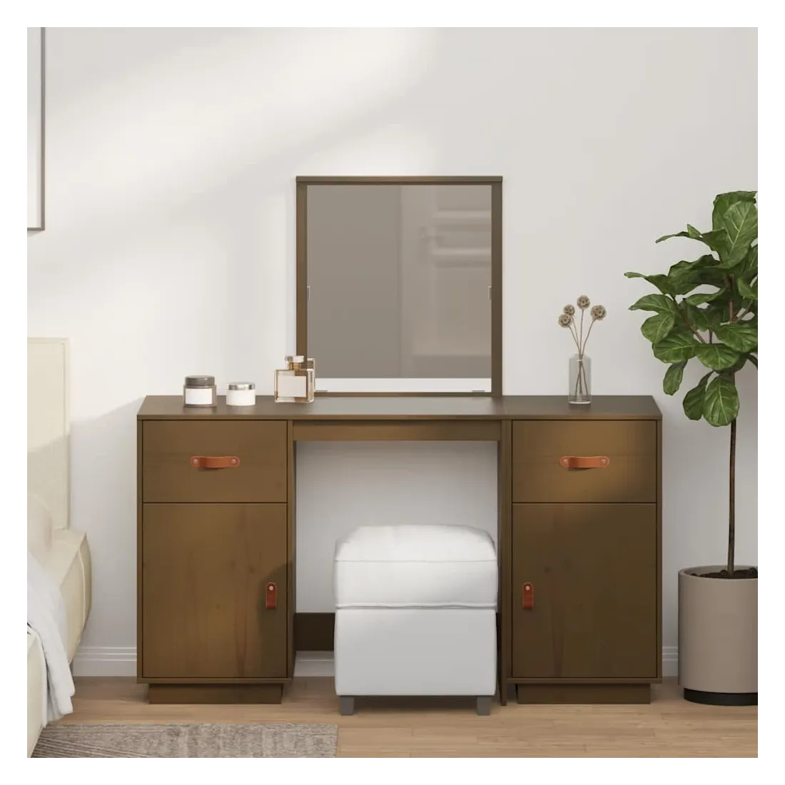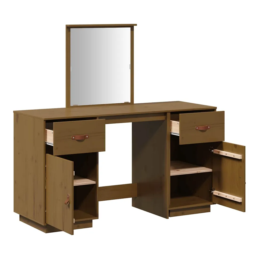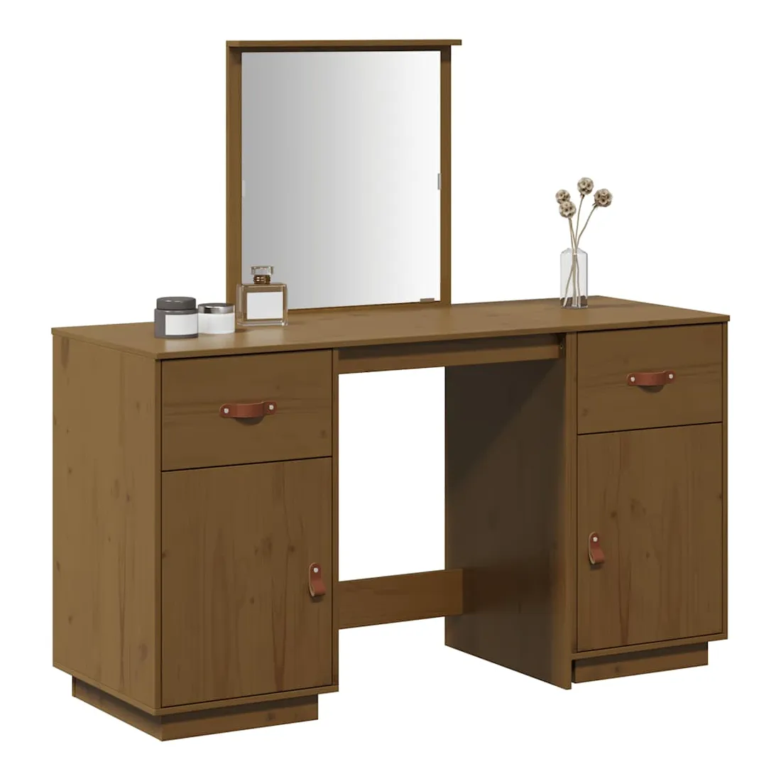 Ensemble de coiffeuse et miroir Marron miel Bois de pin solide