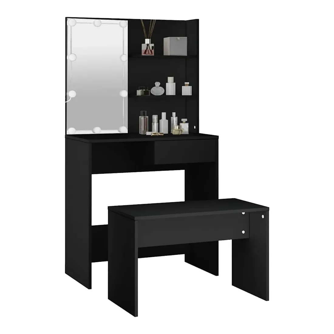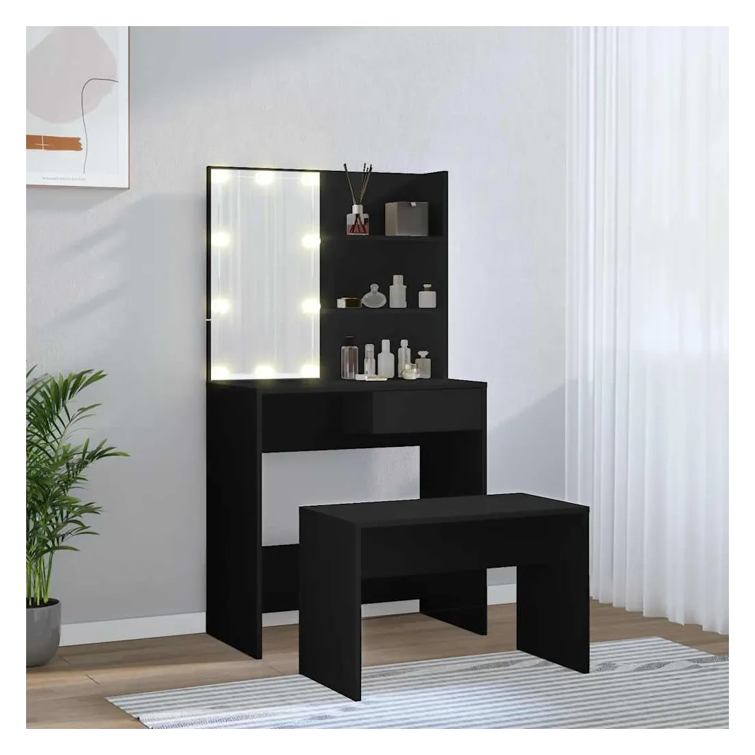 Ensemble de coiffeuse avec LED Noir Bois d'ingénierie