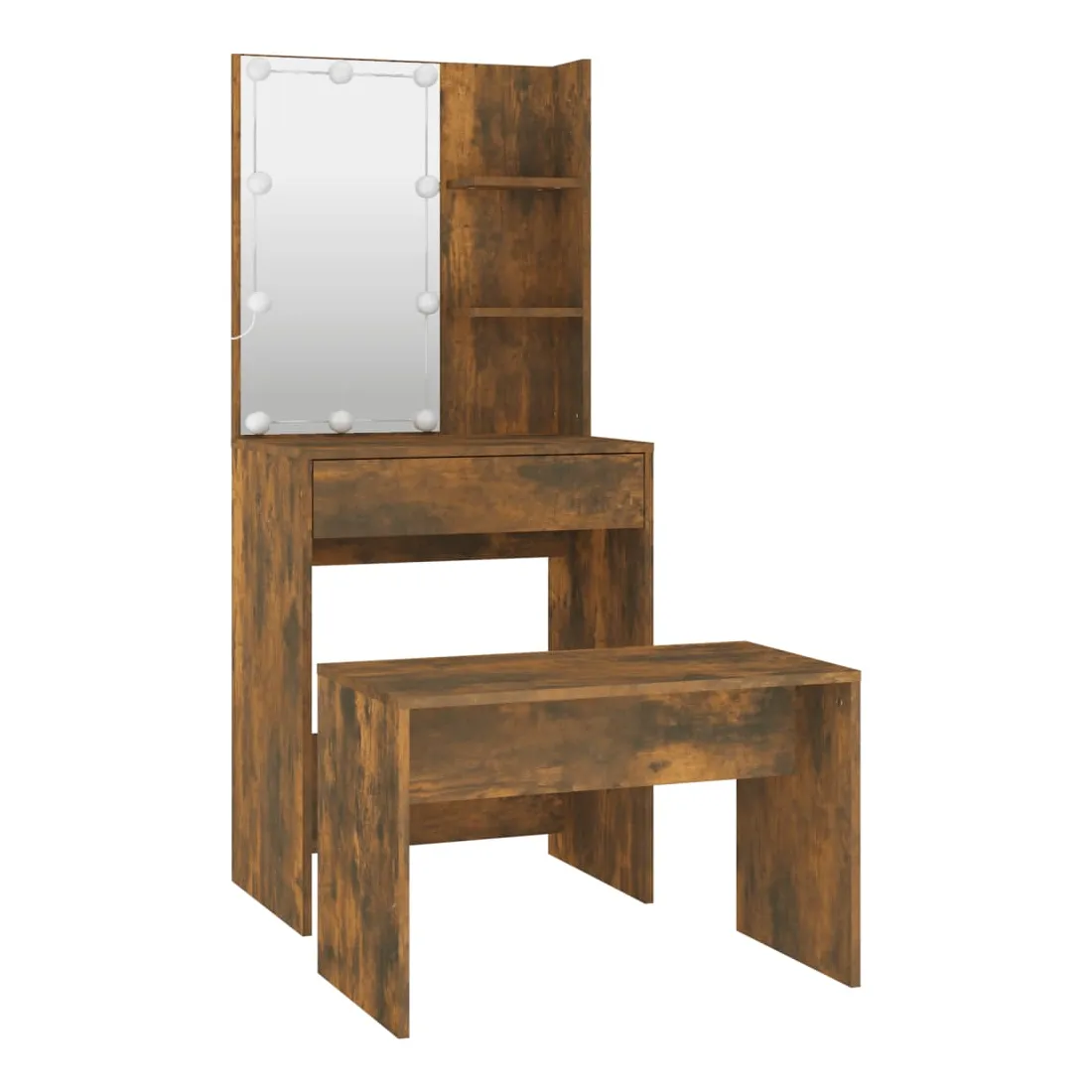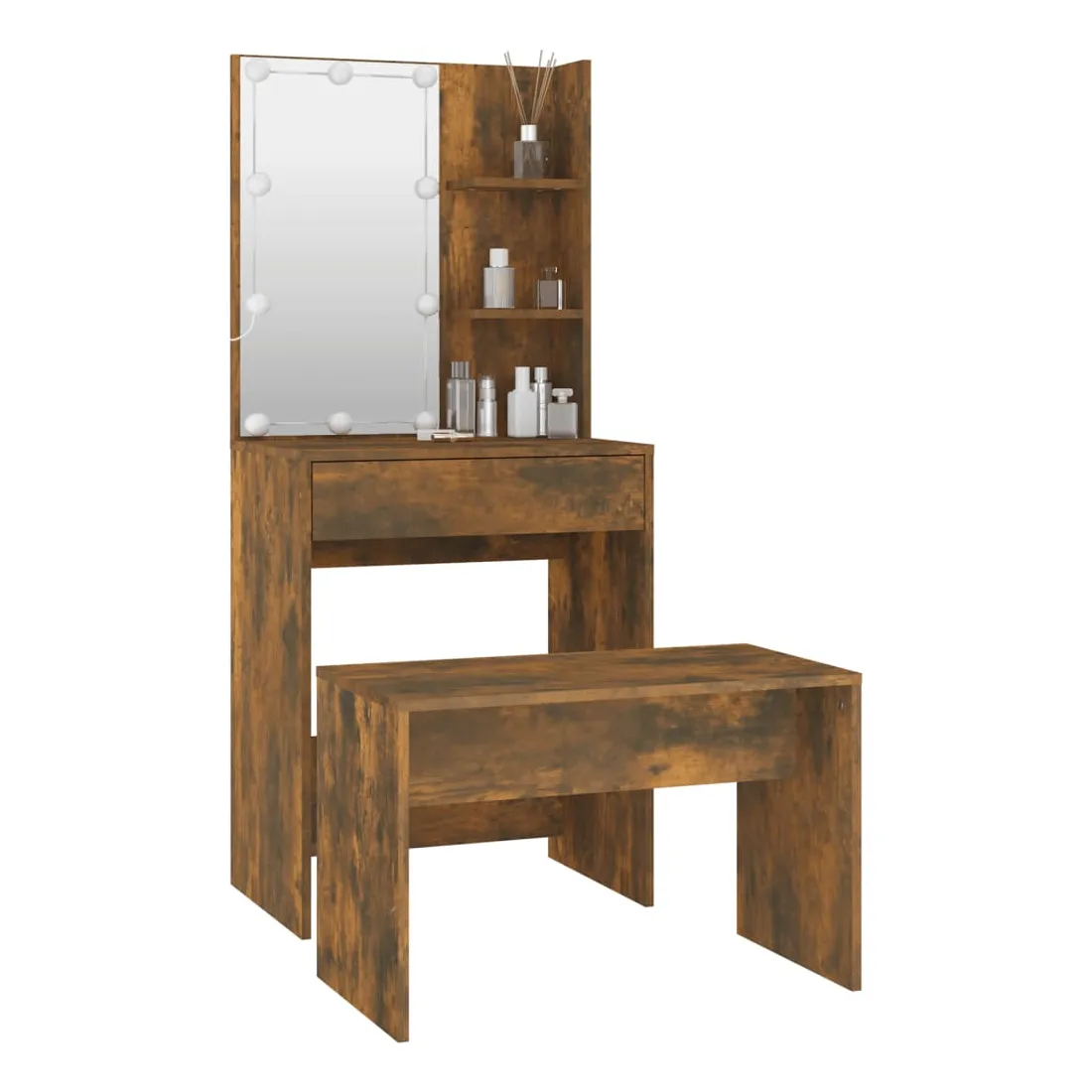 Ensemble de coiffeuse avec LED Chêne fumé Bois d'ingénierie