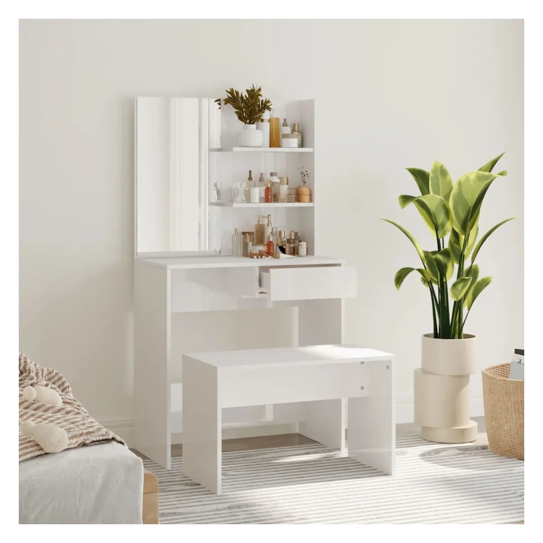 Ensemble de coiffeuse Blanc brillant 74,5x40x141 cm