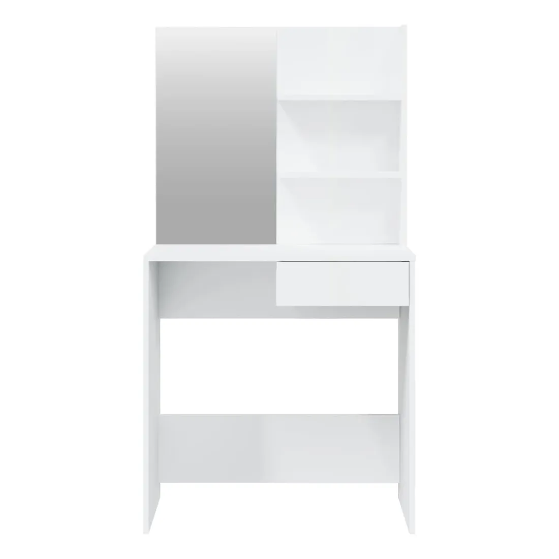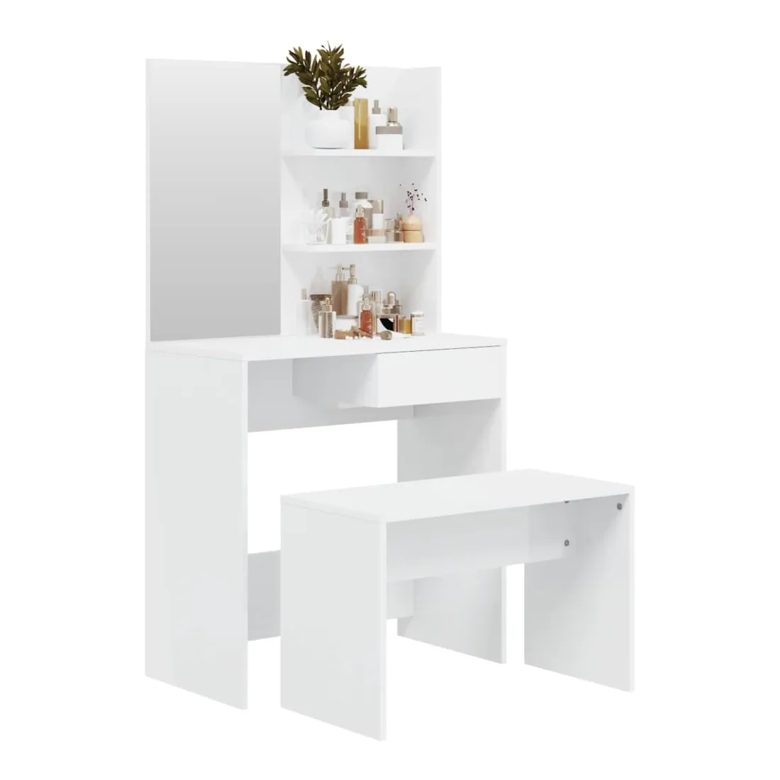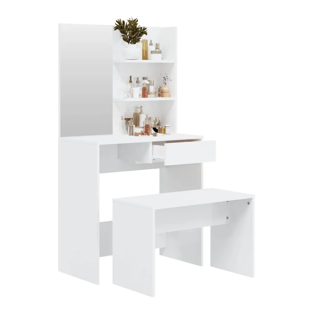 L'ensemble de coiffeuse tendance donne à votre chambre à coucher un look intemporel et raffiné. La coiffeuse avec tabouret est un supplément parfait au décor de votre chambre à coucher et garde vos cosmétiques à portée de main ! Matériau stable : le bois d'ingénierie est d'une qualité exceptionnelle avec une surface lisse et présente également résistance, stabilité et résistance à l'humidité. Grand espace de rangement : la table de maquillage offre suffisamment d'espace pour accéder facilement à vos produits de maquillage, bijoux et articles essentiels du quotidien. Miroir utilitaire : la coiffeuse avec le miroir est parfaite pour votre routine beauté quotidienne. Le miroir vous permet de prendre soin de votre peau faciale et de faire également votre maquillage ! Applications larges :