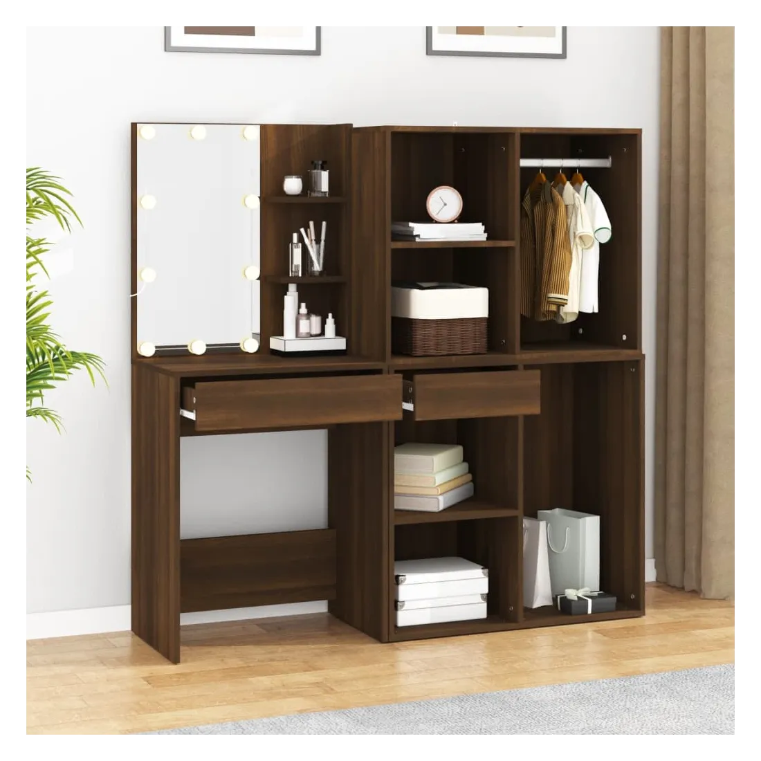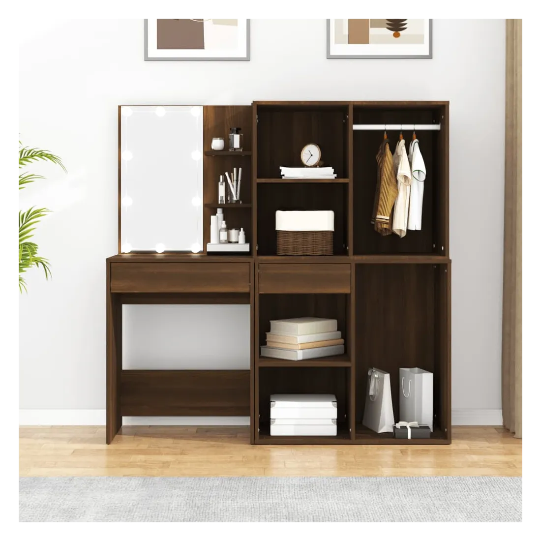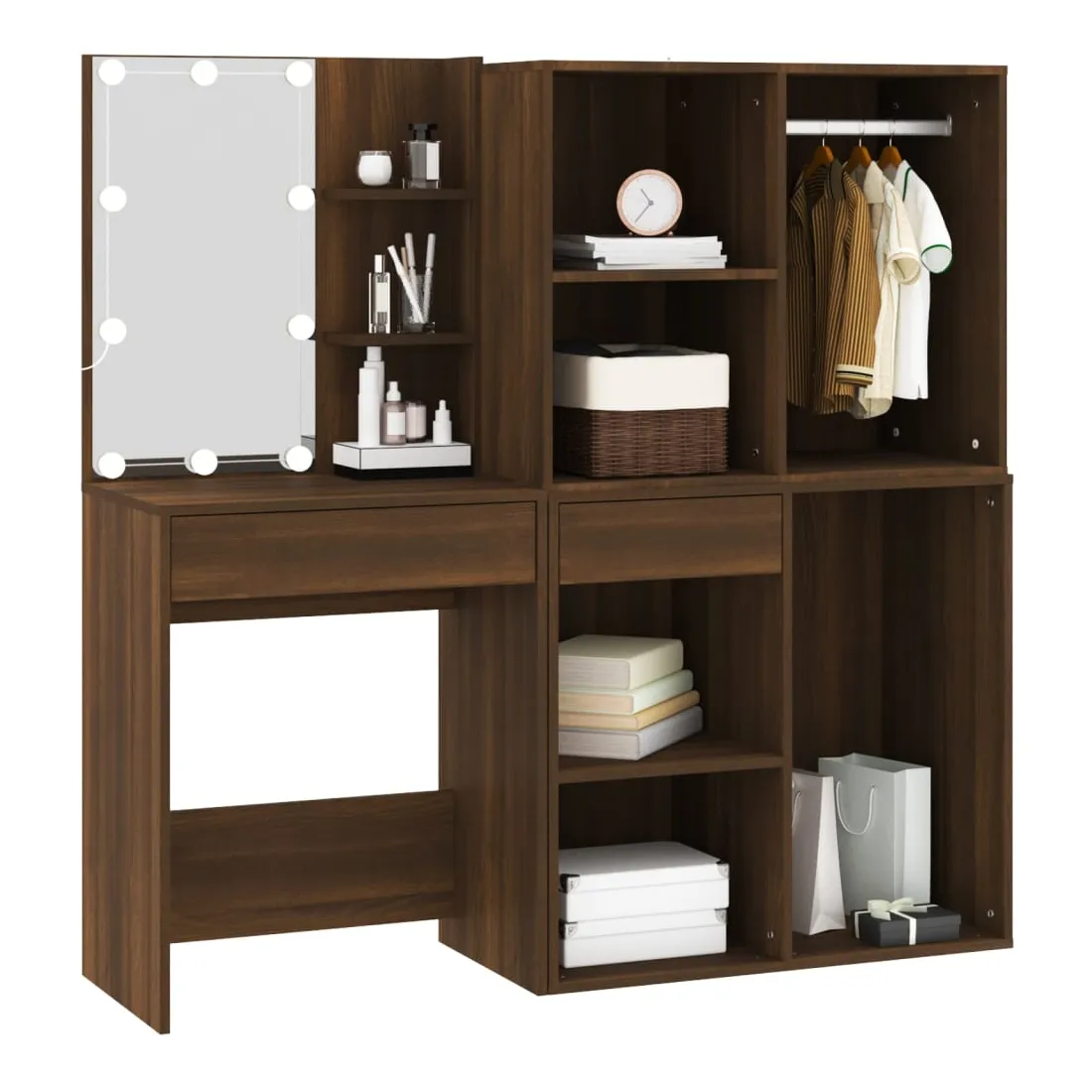 Coiffeuse à LED avec armoires Chêne marron Bois d'ingénierie