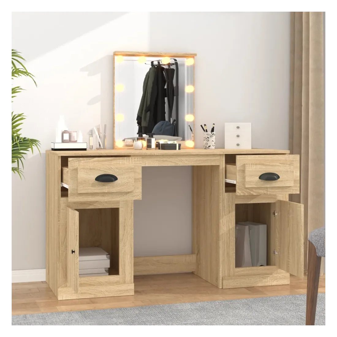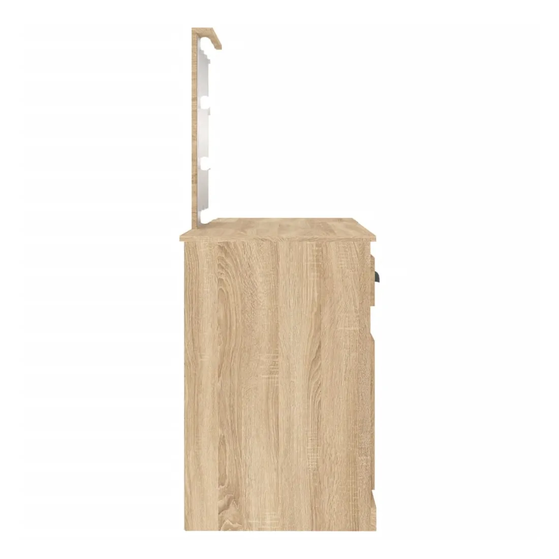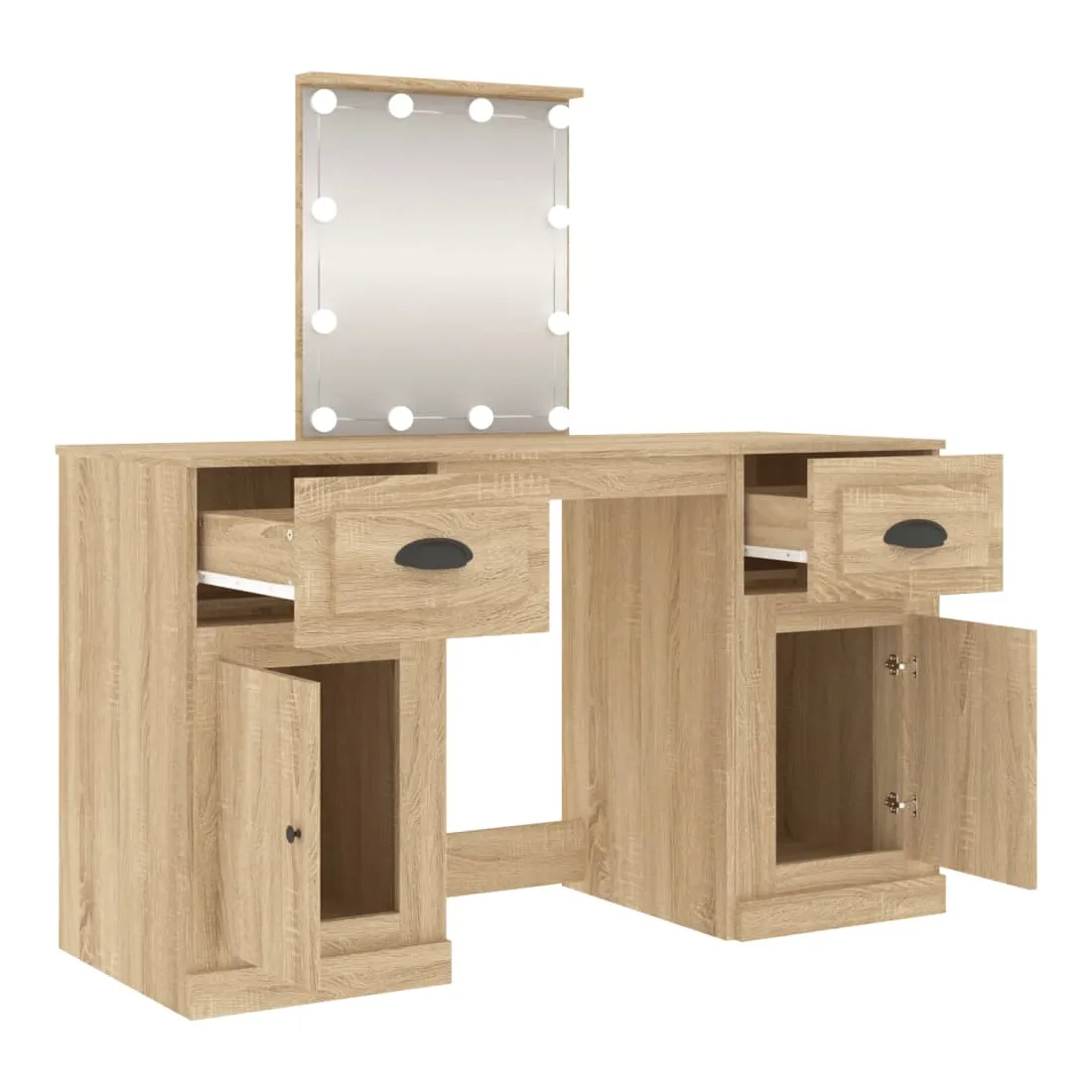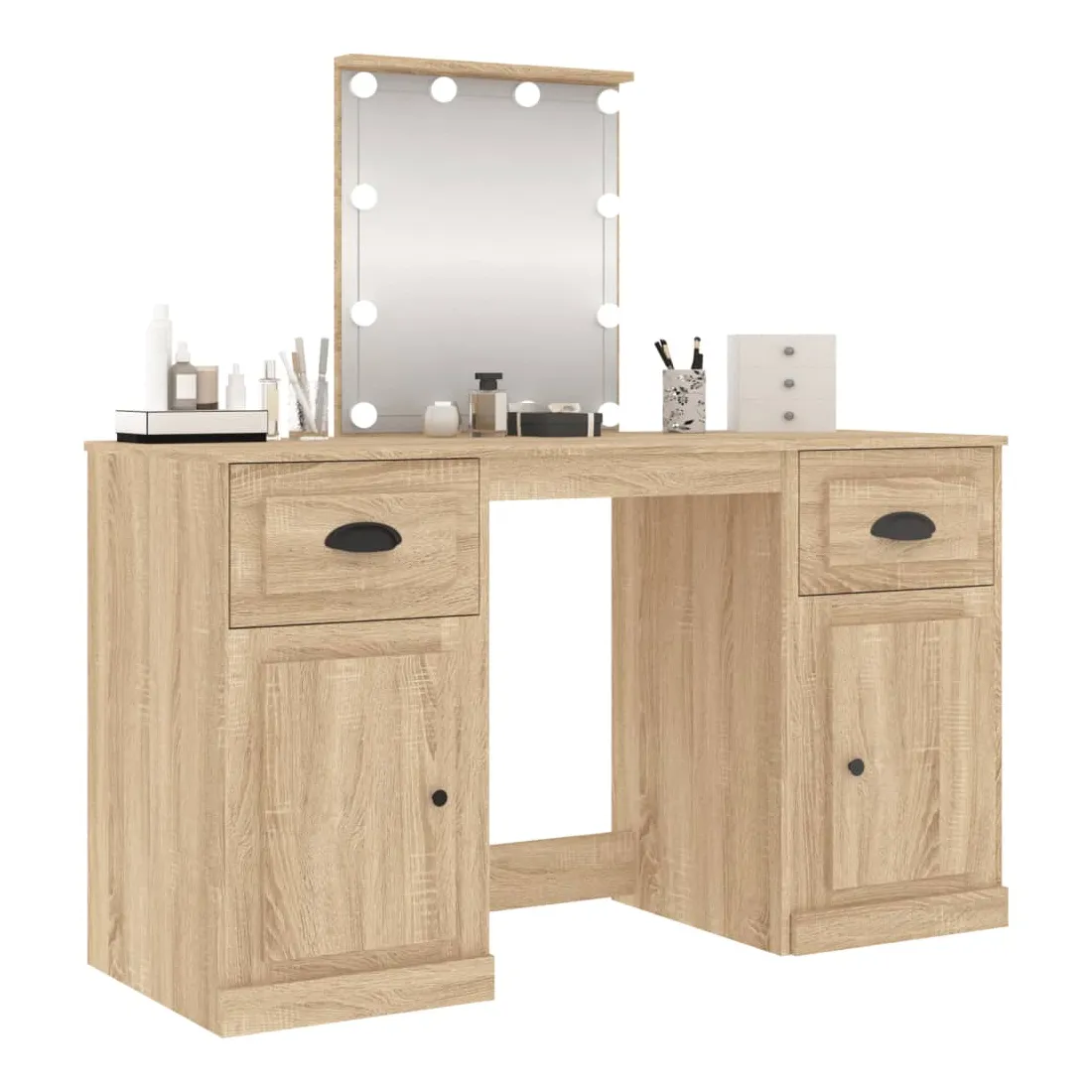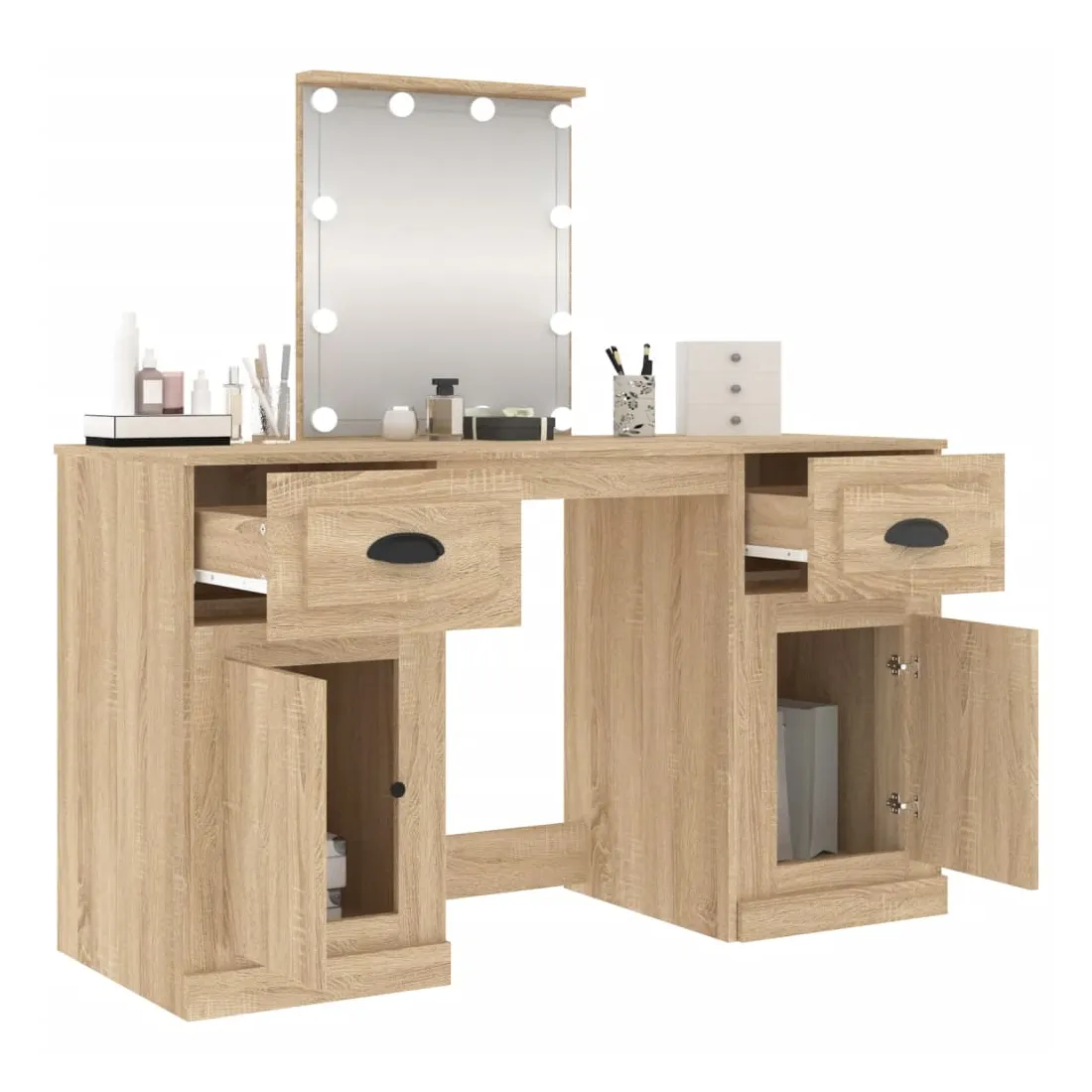 Dotée d'un design à la fois tendance et pratique, cette coiffeuse avec éclairage LED est conçue pour être le point de mire de votre pièce. Matériau durable : le bois d'ingénierie est d'une qualité exceptionnelle avec une surface lisse et présente également résistance, stabilité et résistance à l'humidité.Lumière LED : la table de maquillage dispose d'ampoules LED avec USB, qui sont faciles à changer de mode du blanc chaud au blanc froid. Les ampoules LED autour du miroir illuminent également votre beauté.Miroir utilitaire : la coiffeuse avec le miroir est parfaite pour votre routine beauté quotidienne. Le miroir vous permet de prendre soin de votre peau faciale et de faire également votre maquillage !Grand espace de rangement : le bureau de maquillage offre suffisamment d'espace pour accéder facilement à vos produits de maquillage, bijoux et articles essentiels du quotidien. Bon à savoir :Pour faciliter au maximum le montage, chaque produit est livré avec des instructions.Ce produit est doté d'un connecteur USB, mais la source d'alimentation certifiée de USB 5V n'est pas incluse. Attention : Pour éviter qu'il ne soit renversé, ce produit doit être utilisé avec le dispositif de fixation au mur fourni.