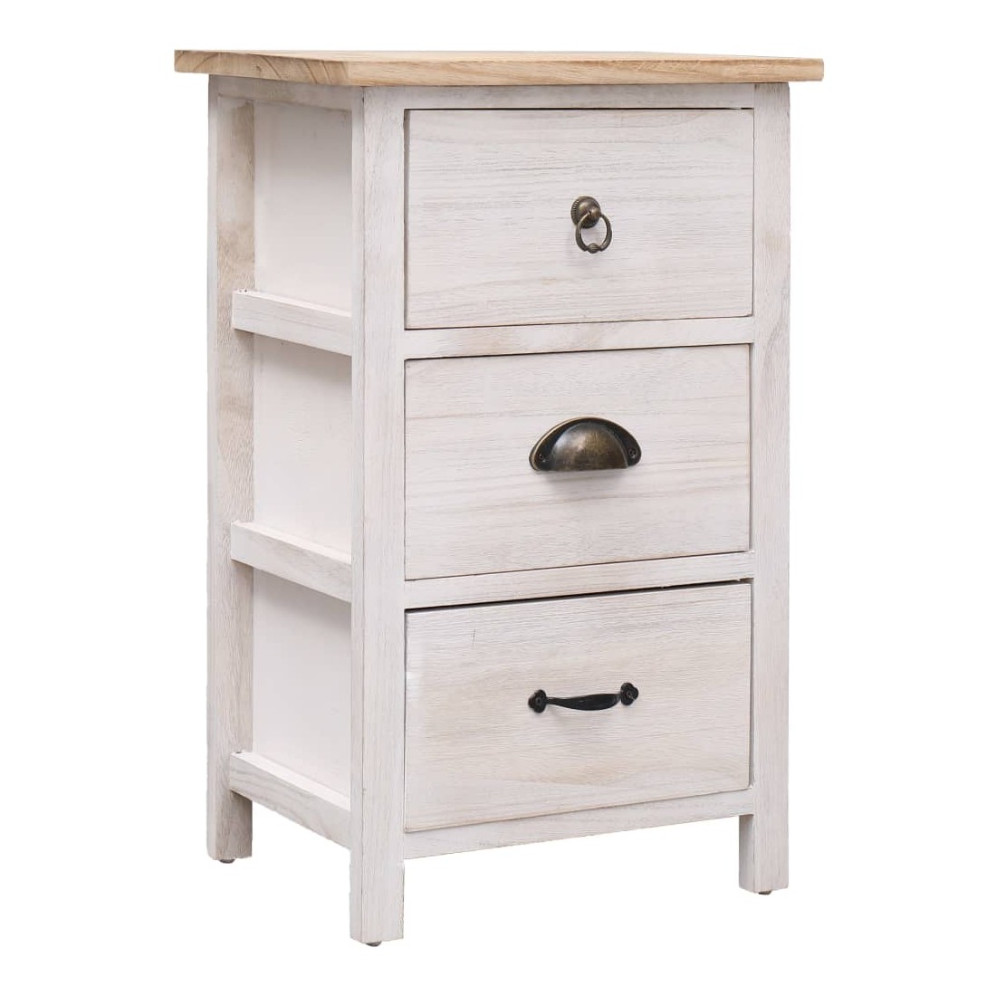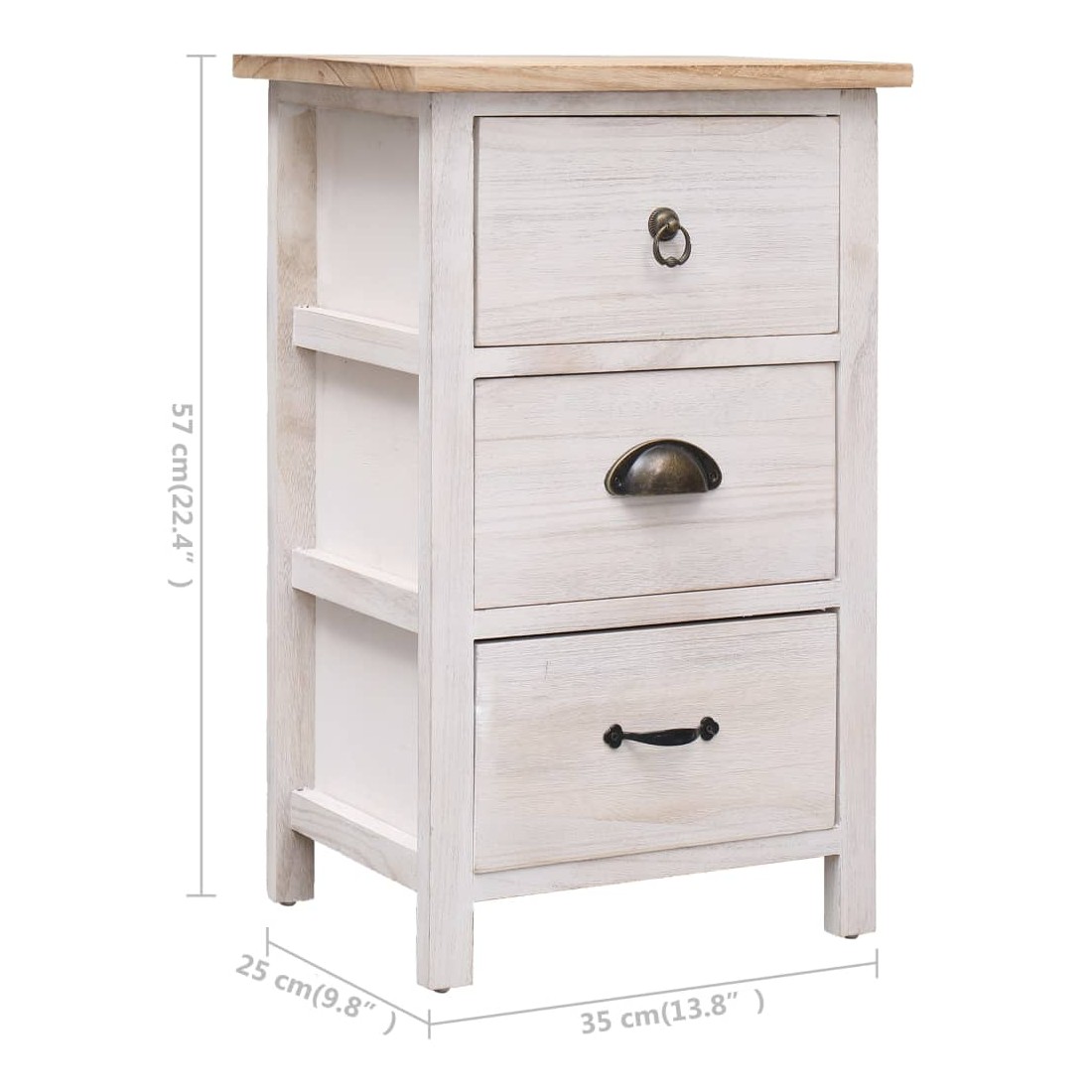 Notre armoire latérale apportera une touche pratique et décorative à votre intérieur. Elle peut également être utilisée comme support de téléphone, armoire de chambre à coucher, etc. Fabriqué en bois de paulownia, ce meuble à tiroirs est extrêmement durable et robuste. Le buffet offre un grand espace de rangement avec 3 tiroirs. En outre, le dessus de table robuste est idéal pour afficher des objets décoratifs, des cadres photo ou des plantes en pot. Il est facile d'essuyer avec un chiffon humide. Le meuble latéral est facile à assembler.