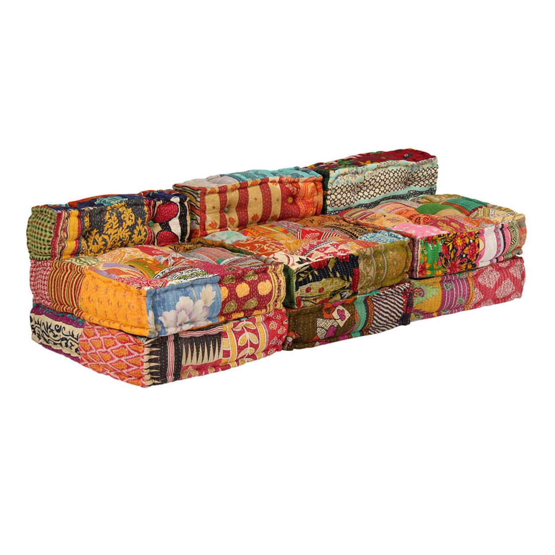Quoi de mieux qu'un pouf modulaire très confortable pour compléter votre mobilier de salon ? Notre pouf convertible sera un choix parfait pour vous détendre et profiter de votre temps libre dans le plus grand confort. Le canapé modulaire au design unique ajoutera une touche de style exotique à votre intérieur. Ce canapé-lit polyvalent a un design modulaire. Vous pouvez facilement combiner les sections modulaires en différentes configurations et les transformer en canapé, lit, chaise longue, chaise simple ou pouf - comme vous voulez ! Il sera idéal pour les soirées cinéma en famille ou lorsque les enfants ont des amis pour jouer à des jeux vidéo, et peut également être utilisé pour profiter du temps sur la véranda. Grâce au revêtement en tissu coton et au rembourrage épais, le canapé est doux et confortable. Les oreillers d'accent feront un ajout décoratif tout en offrant un confort supplémentaire. Remarque : La conception de patchwork peut varier d'une pièce à l'autre, rendant chacun de nos canapé-lits unique. La livraison est aléatoire.