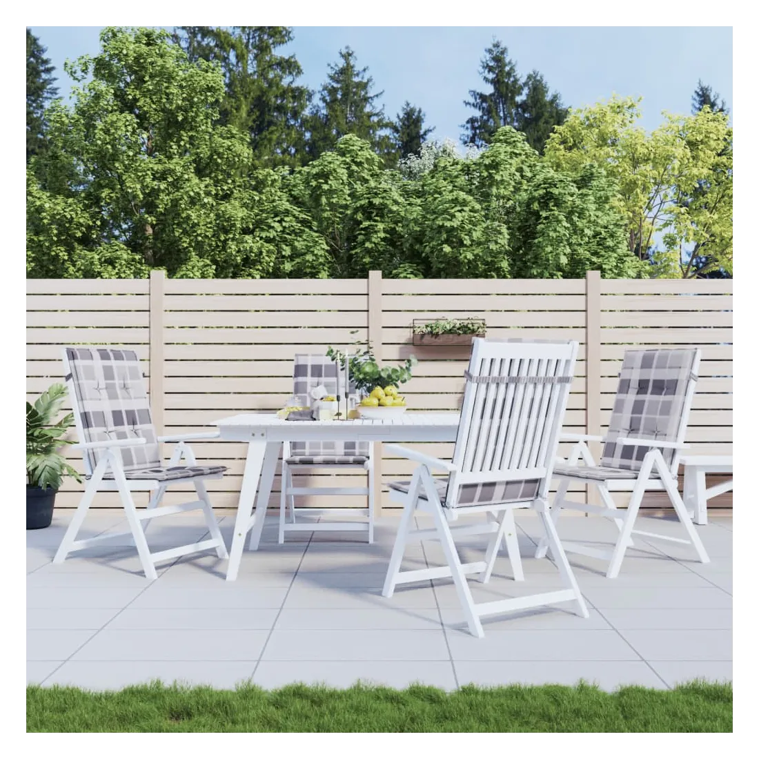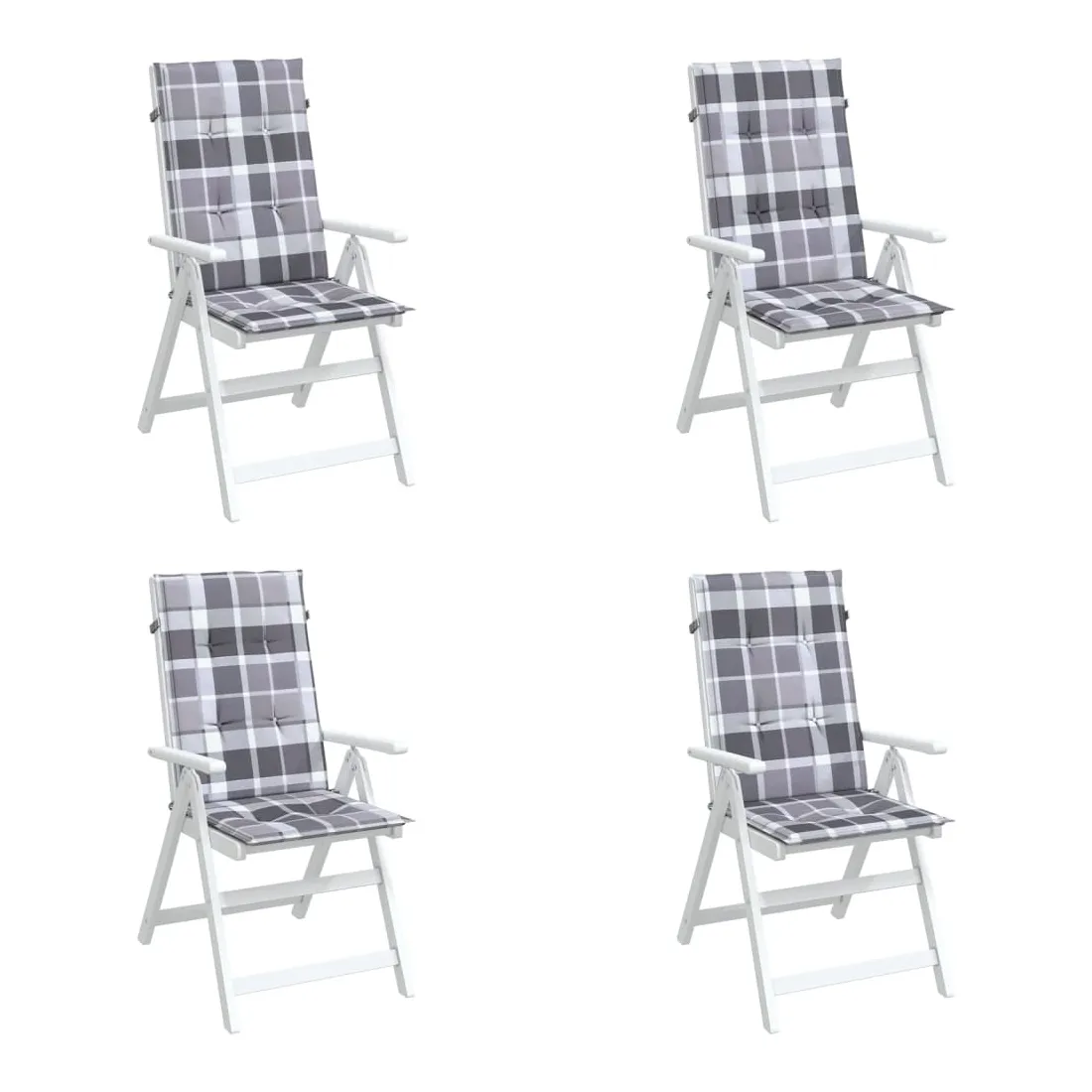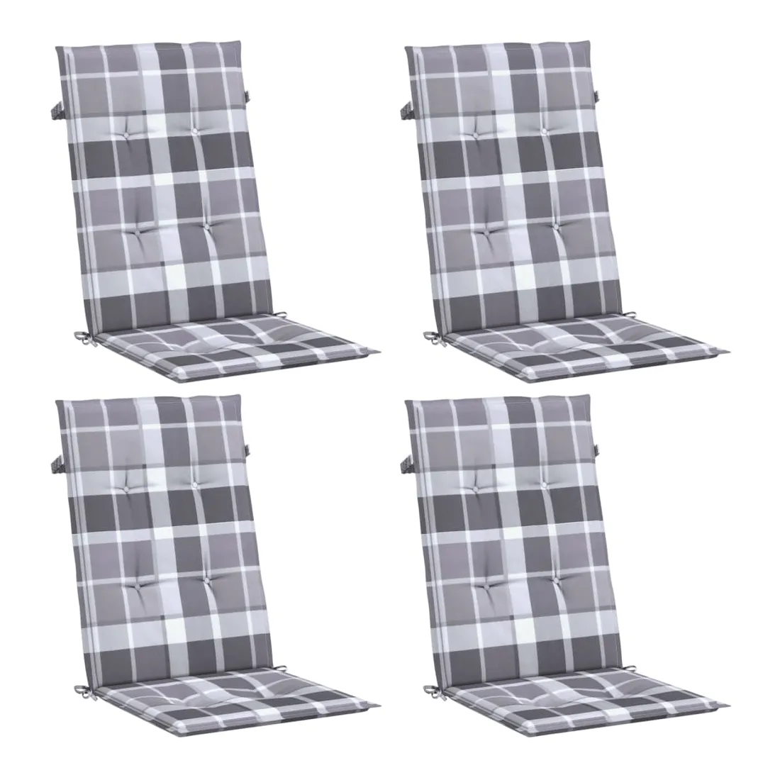 Coussins de chaise jardin à dossier haut lot de 4 carreaux gris