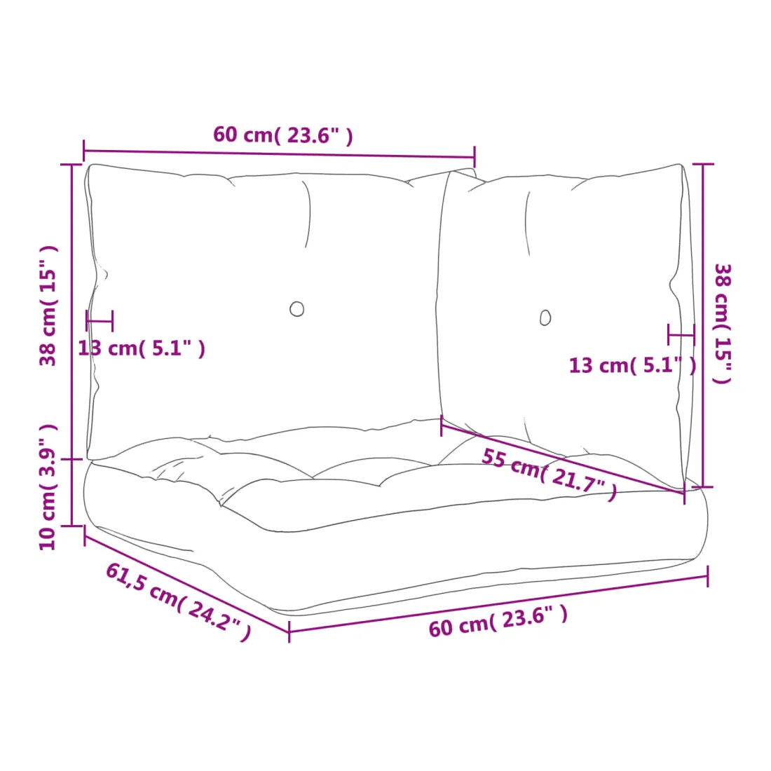 - Dimensions du coussin de dossier : 60 x 38 x 13 cm (L x l x é)