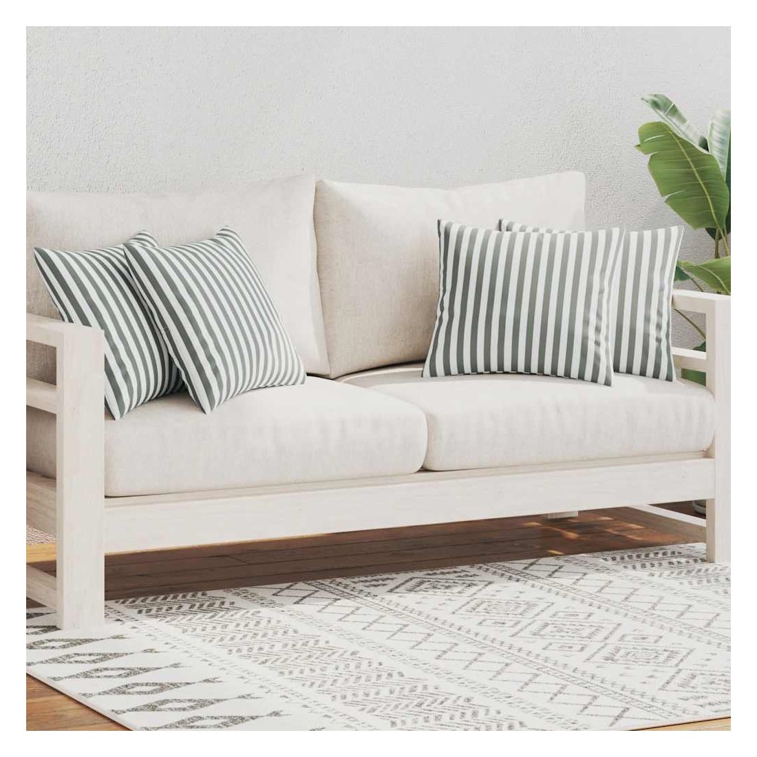 Embellissez votre mobilier de jardin en ajoutant ces coussins décoratifs d'extérieur colorés ! Ces oreillers moelleux et confortables avec belles rayures sont faits de tissu résistant à l'eau et aux UV, ce qui les rend durables et adaptés à une utilisation en extérieur. La fermeture éclair permet de remplacer facilement le remplissage ou de laver la housse. La livraison comprend 4 coussins d'extérieur.