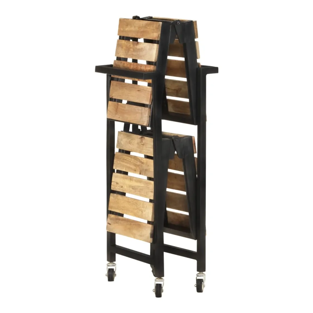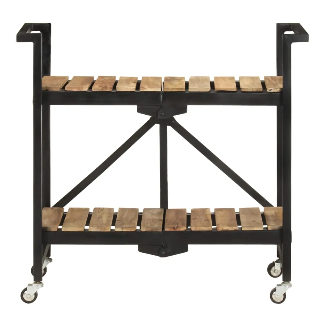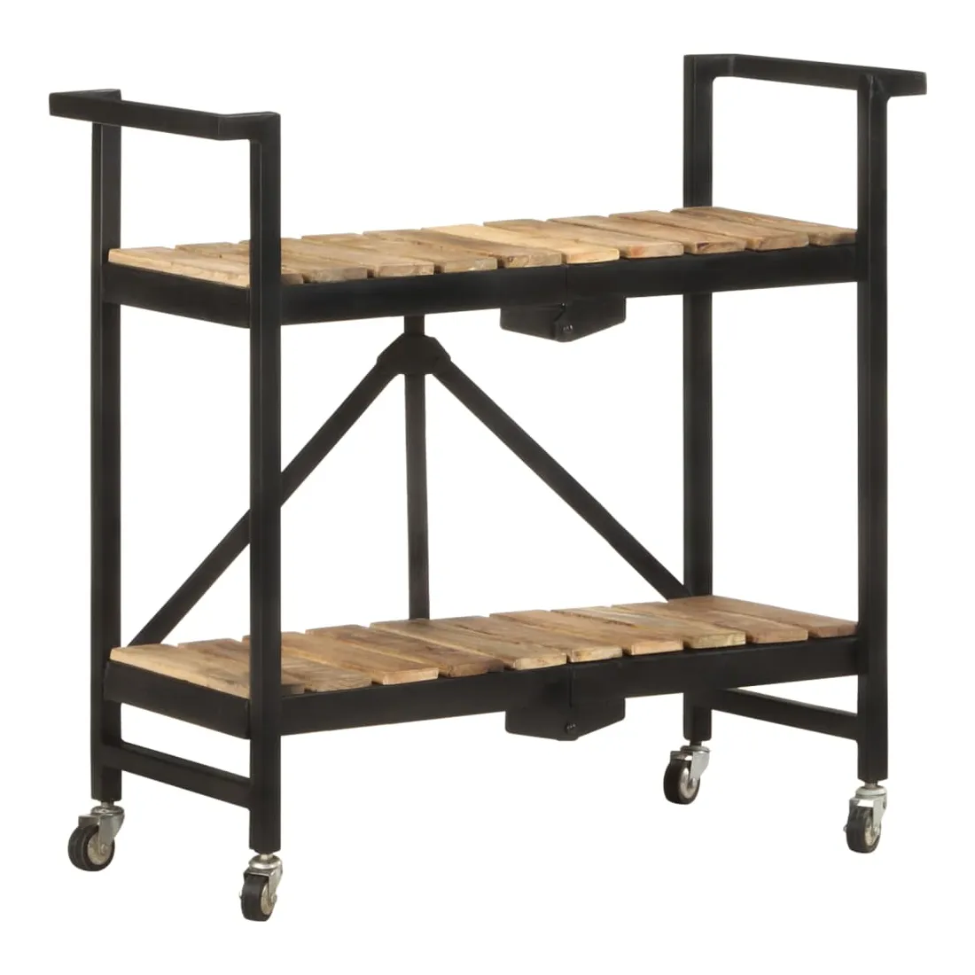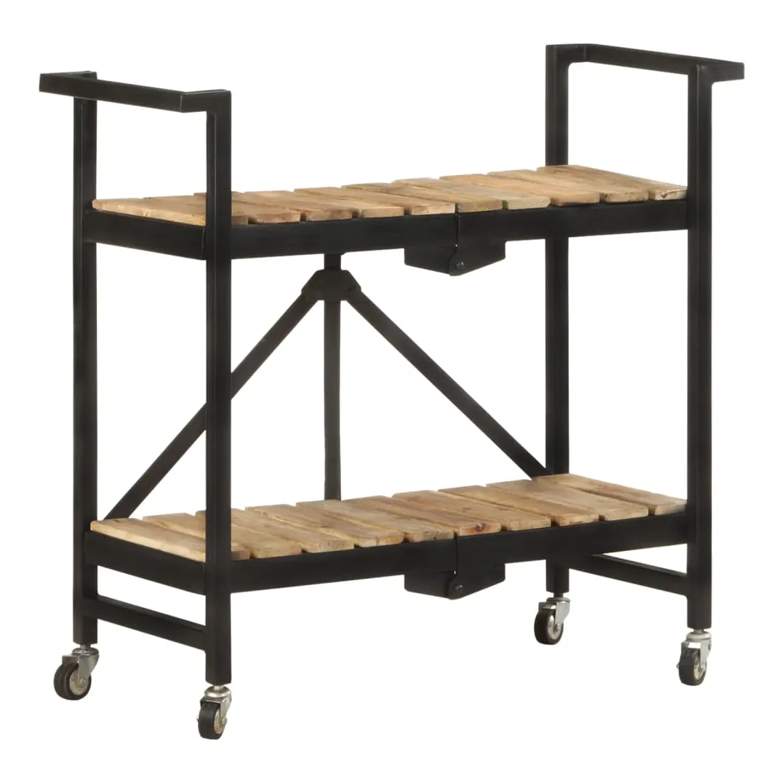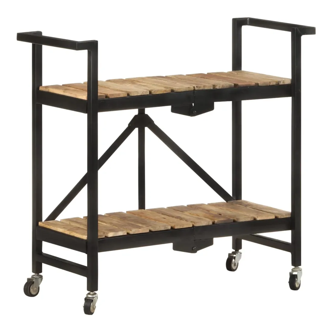 vidaXLCe chariot de cuisine ajoute une ambiance distinctive et rustique et offre un espace de rangement supplémentaire à votre maison. Ce chariot de cuisine est fabriqué en bois de manguier massif, un bois dur tropical avec la force de supporter le poids. Il résiste à l’usure du temps, ce qui le rend stable et durable. De plus, l’artisanat exquis et les beaux grains de bois font chaque pièce légèrement différente l'une de l'autre. Le cadre en acier enduit de poudre ajoute également à sa robustesse. Ce chariot de rangement comprend 2 compartiments pour placer les aliments, les bouteilles et d’autres articles essentiels à portée de main. Grâce à sa conception pliable, le chariot à étagères peut être facilement rangé lorsqu'il n'est pas utilisé. De plus, l'étagère de cuisine est équipée de roues flexibles pour un déplacement facile. Remarque importante : les couleurs varient d'une pièce à l'autre, ce qui rend chaque chariot de cuisine en bois unique.