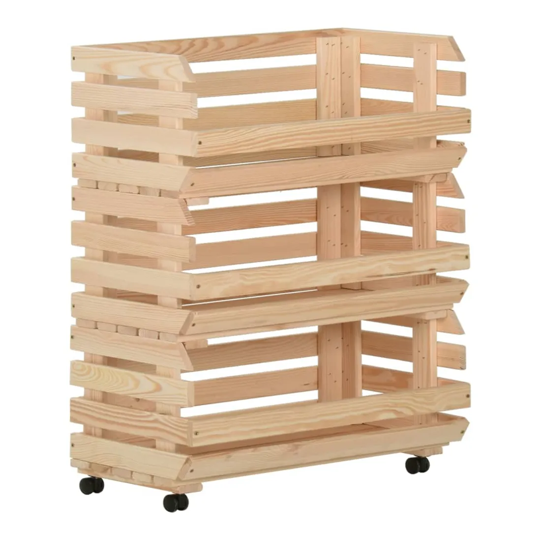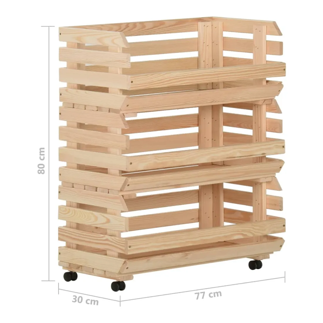 Ce chariot de cuisine ajoute une ambiance distinctive et rustique et offre un espace de rangement supplémentaire à votre maison. Cette boîte à fruits est fabriquée en pin massif, ce qui la rend stable et durable. Le chariot de rangement comprend 3 compartiments pour placer les aliments, les bouteilles et autres objets essentiels à portée de main. Grâce à sa conception détachable, vous pouvez utiliser chaque étagère individuellement selon vos besoins. De plus, le chariot de cuisine est équipé de roues flexibles pour un déplacement facile.