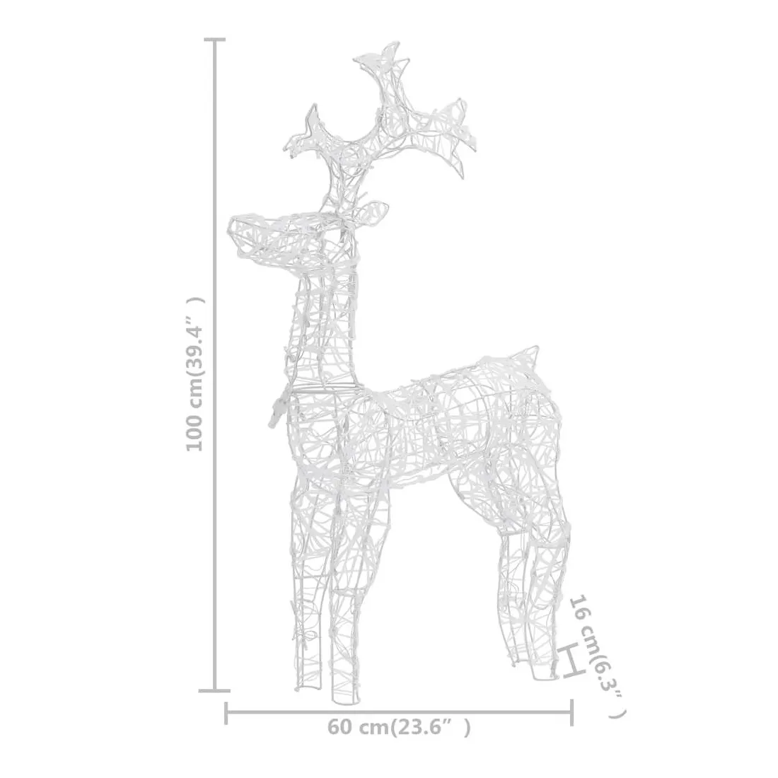 vidaXLCréez un superbe présentoir dans votre jardin ou maison ce Noël avec ces magnifiques décorations en forme de renne ! Matériau résistant aux intempéries : ces rennes éclairés sont fabriqués en acrylique, et ils peuvent résister à l'humidité et à la pluie. Ils peuvent également être facilement nettoyés avec un chiffon humide si nécessaire.LED à économie d'énergie : ces rennes lumineux sont pré-éclairés avec 90 LED, qui sont économes en énergie et durables.Magnifique effet lumineux : ces décorations de Noël sont conçues avec des effets lumineux, qui créent une ambiance de vacances magique. Remarque :Le connecteur USB inclus n'est pas étanche, cette partie doit donc éviter l'eau, mais grâce au câble d'extension, la décoration de Noël peut être utilisée à l'extérieur car le câble et le produit sont étanches.Ce produit est doté d'un connecteur USB, mais la source d'alimentation certifiée de USB 5V n'est pas incluse.