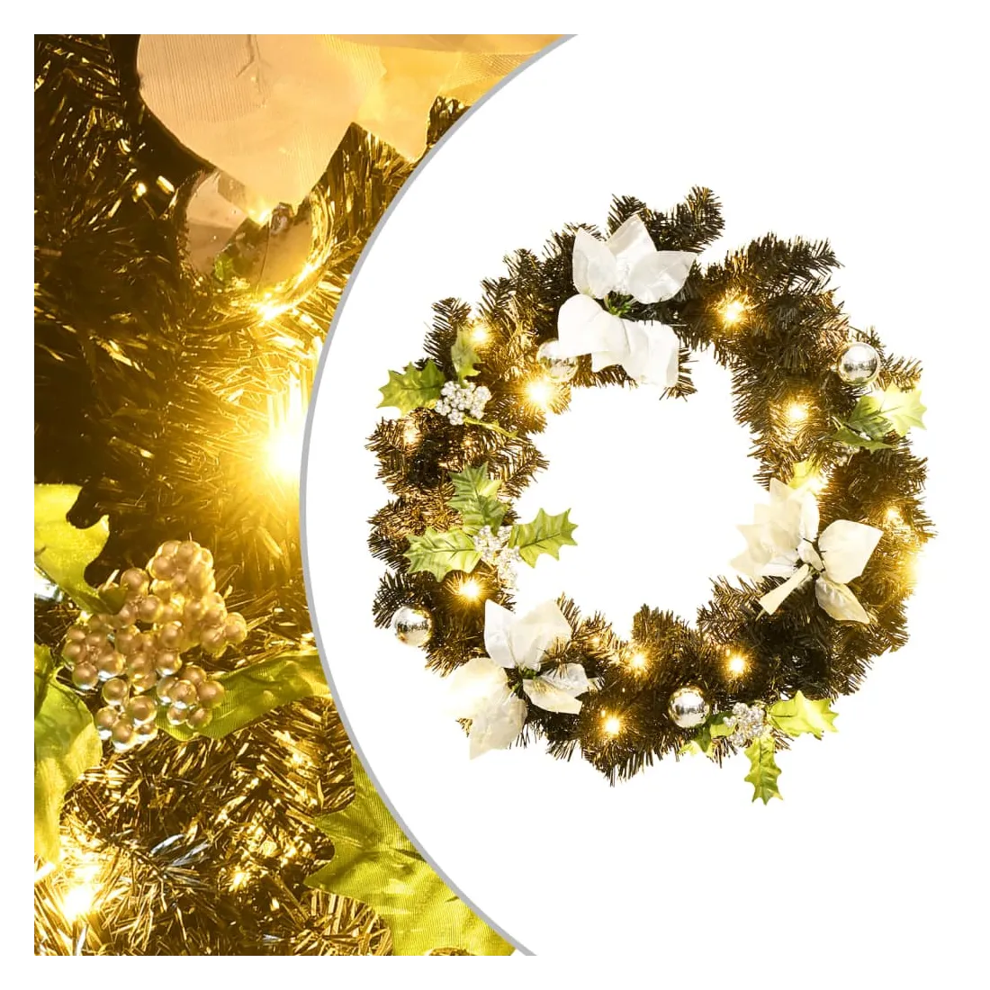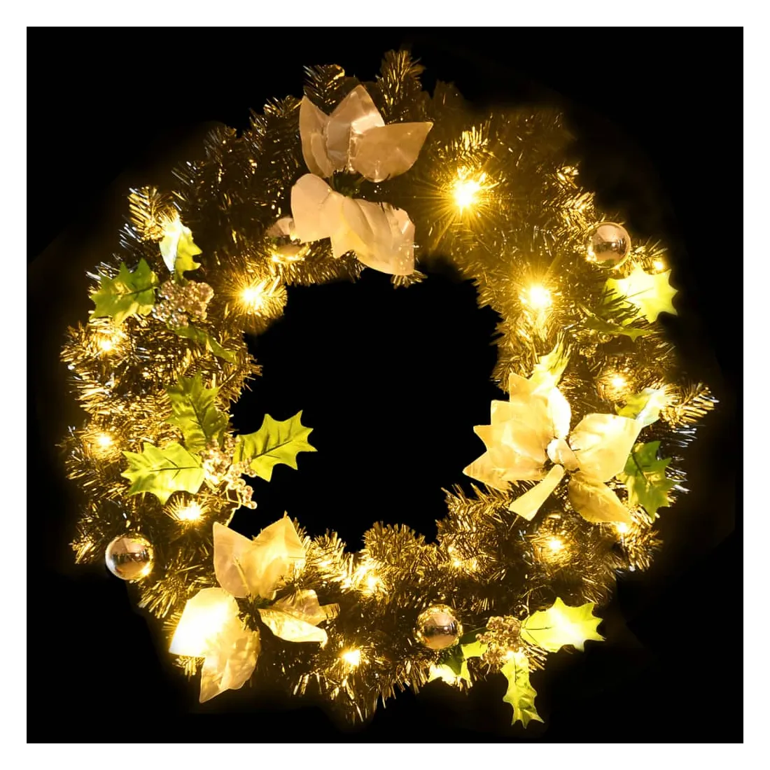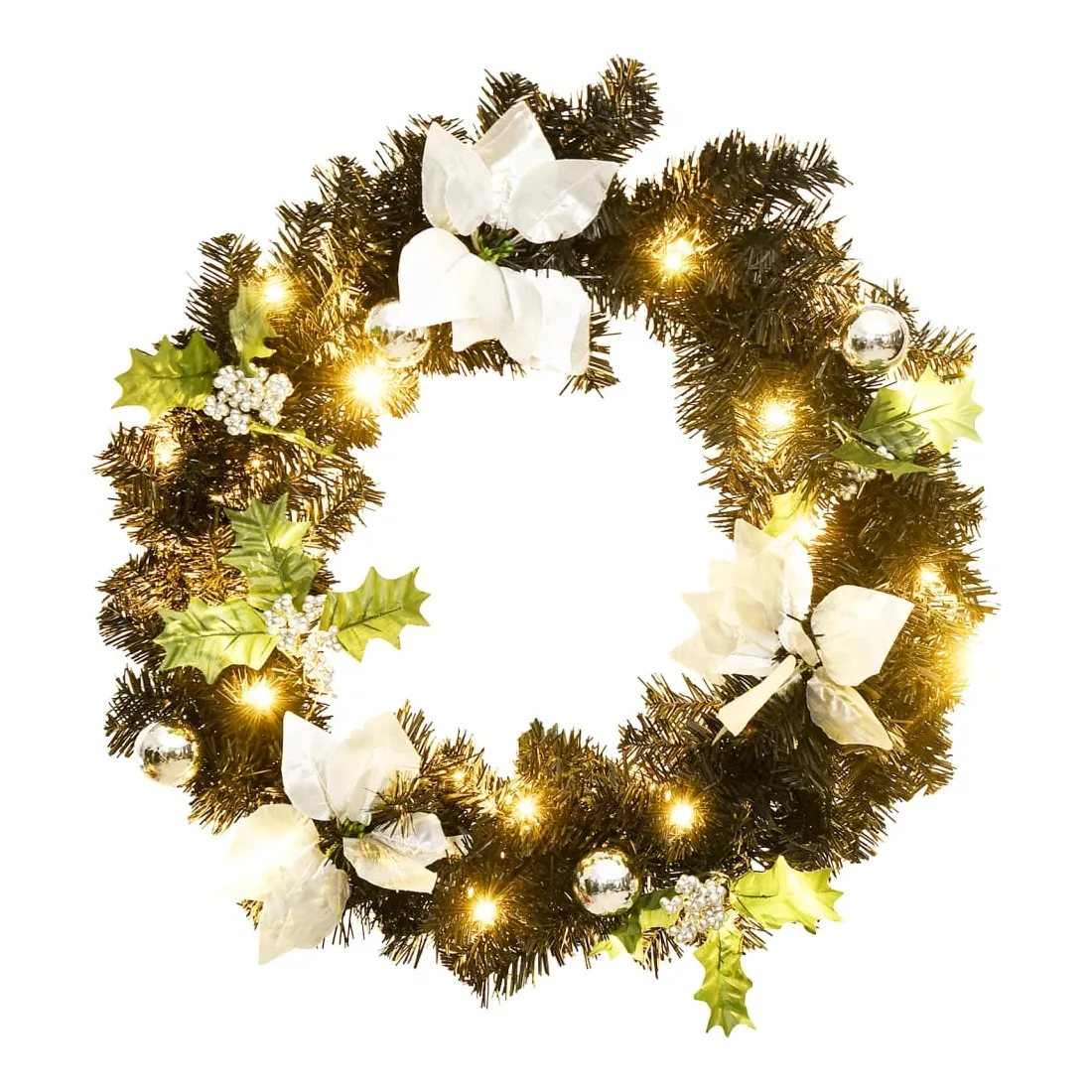 Créez l'ambiance de vacances parfaite avec notre jolie couronne de Noël ! Elle a l'air spectaculaire partout où vous l'accrochez. Cette magnifique couronne, fabriquée en PVC, convient aussi bien à un usage intérieur qu'extérieur. Les boules décoratives et les lumières LED font de cette couronne un véritable accroche-regard. Lorsqu'elle n'est pas utilisée, elle peut être facilement rangée pour les prochaines vacances, ce qui en fait un choix économique. Remarque : ce produit est doté d'un connecteur USB, mais la source d'alimentation certifiée de USB 5V n'est pas incluse.
