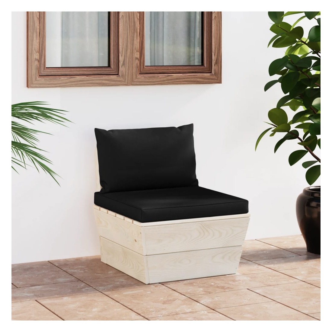 Canapé central palette de jardin avec coussins Épicéa imprégné