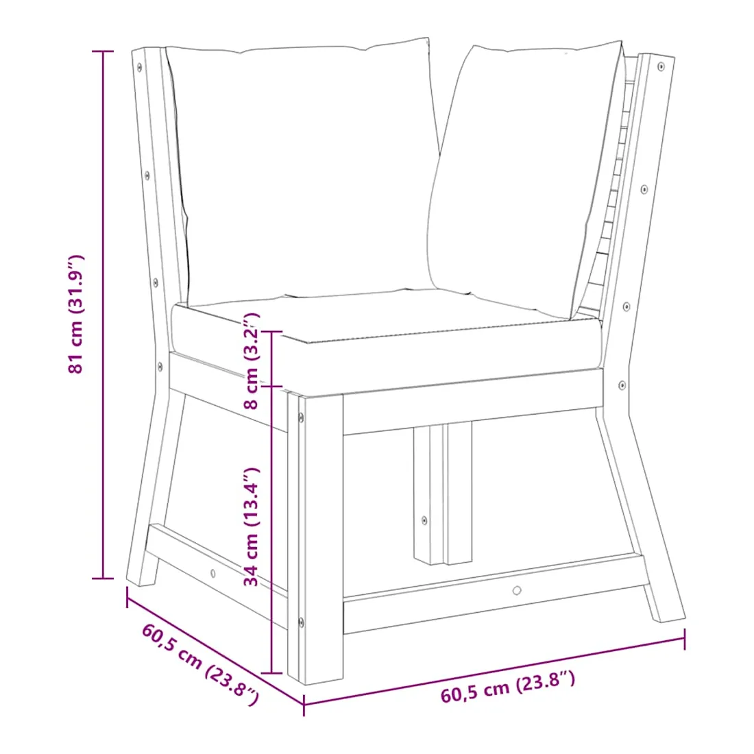 • Épaisseur du coussin de siège : 8 cm