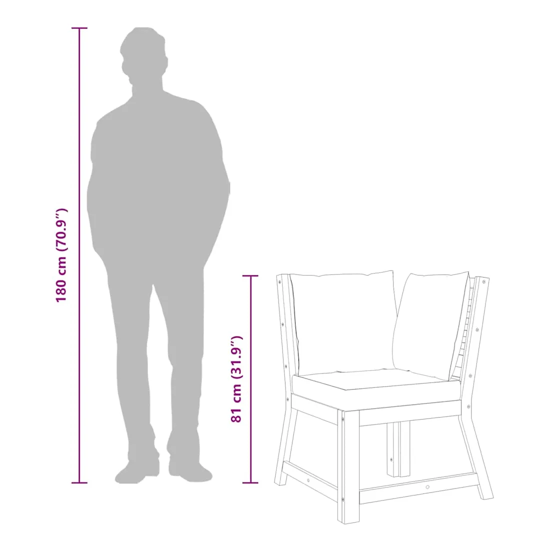 • Épaisseur du coussin de dossier : 15 cm