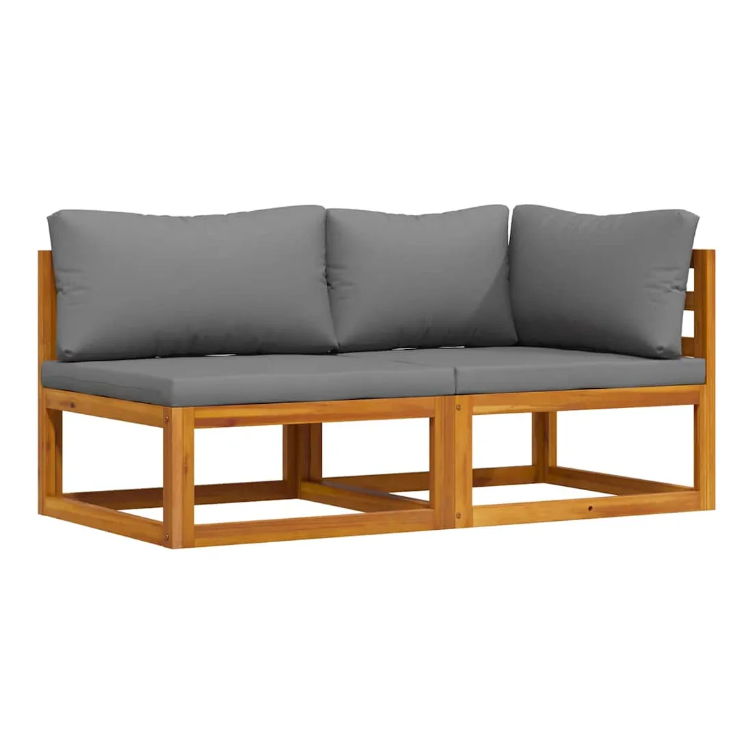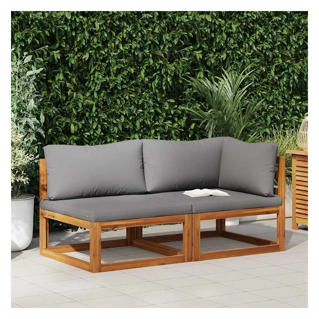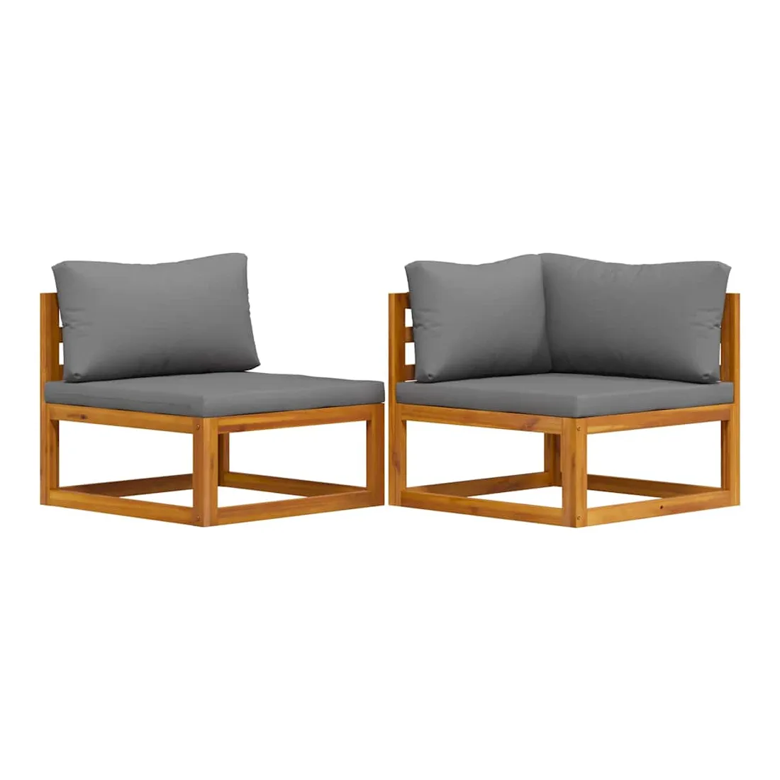 Ensemble de canapés 2pcs avec coussins gris foncé Acacia solide