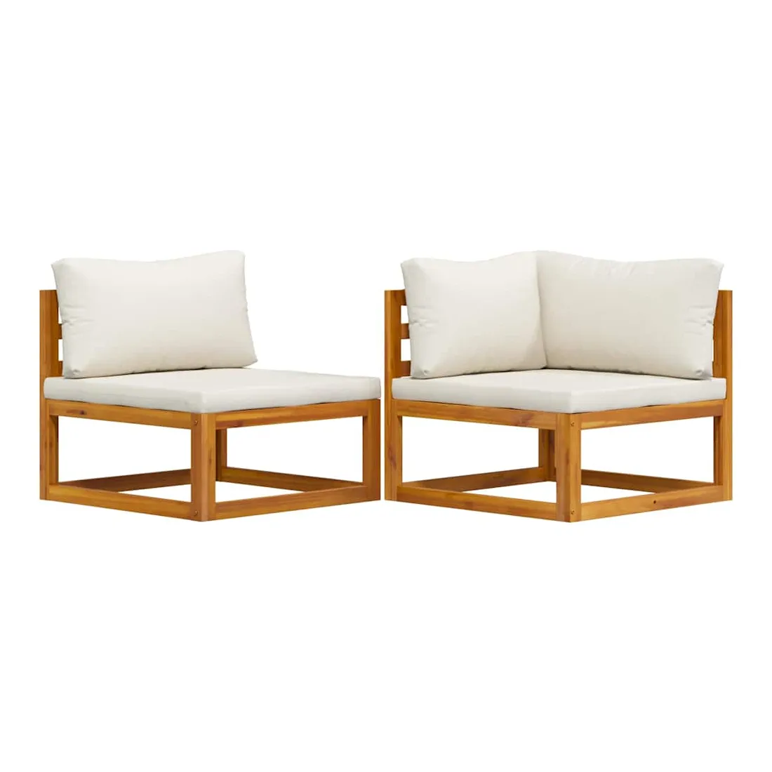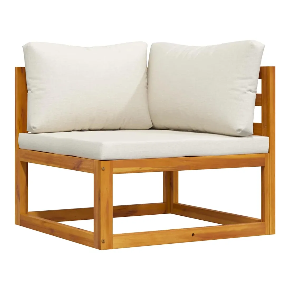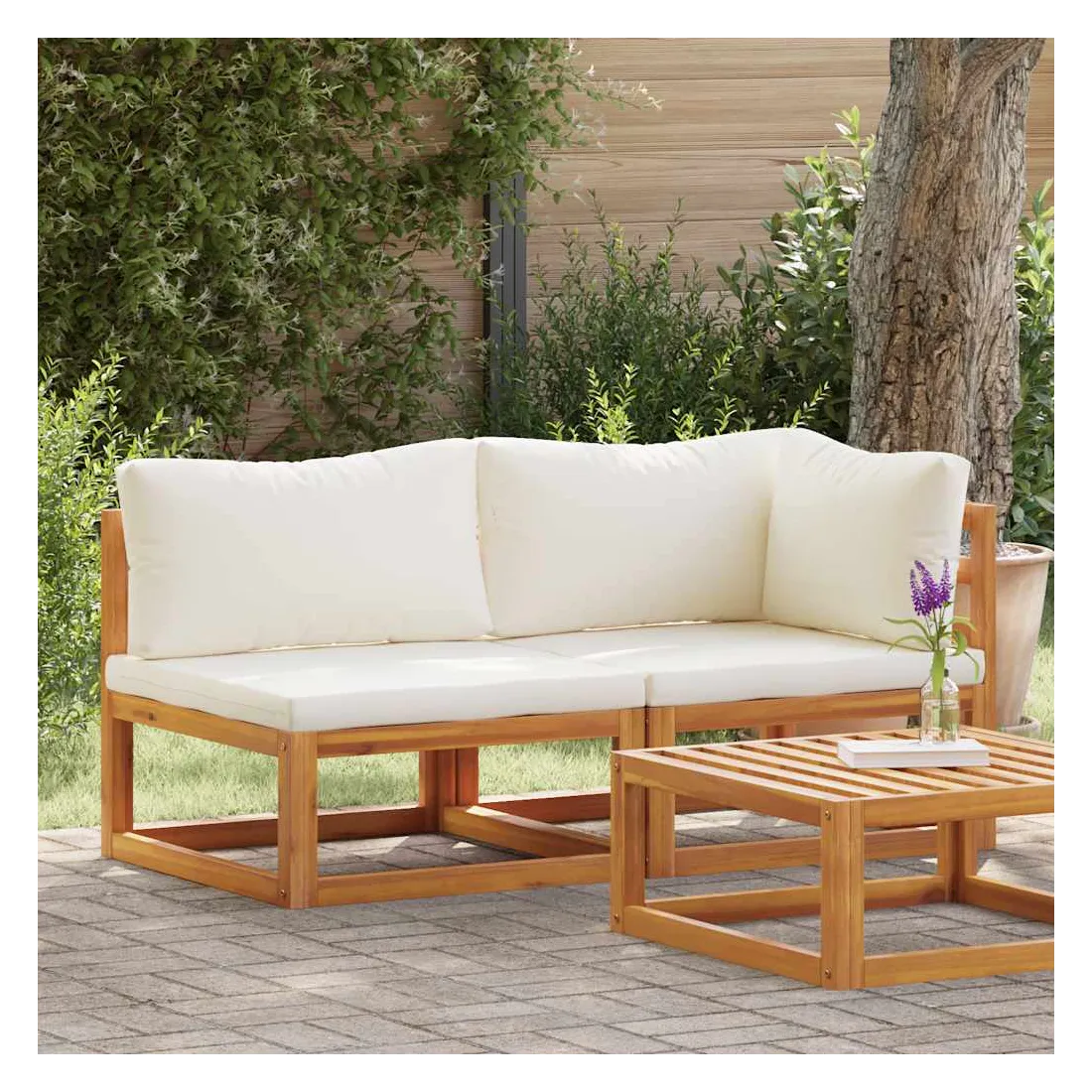 Cet élégant ensemble de canapé en bois allie style et fonctionnalité et est conçu pour s’adapter parfaitement à l’intérieur et à l’extérieur. L’ensemble de canapés, doté d’un cadre en bois d’acacia massif, est solide, robuste et durable. Sa finition à l'huile rend l’ensemble de canapés adapté à une utilisation dehors. Le siège et les coussins de dossier rembourrés offrent le confort suprême à votre expérience assis. L’ensemble contient un canapé d’angle et un canapé de milieu. Vous pouvez les combiner avec d’autres segments modulaires disponibles pour créer vos configurations de salon de jardin personnelles selon vos goûts !