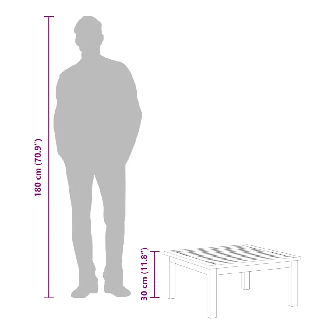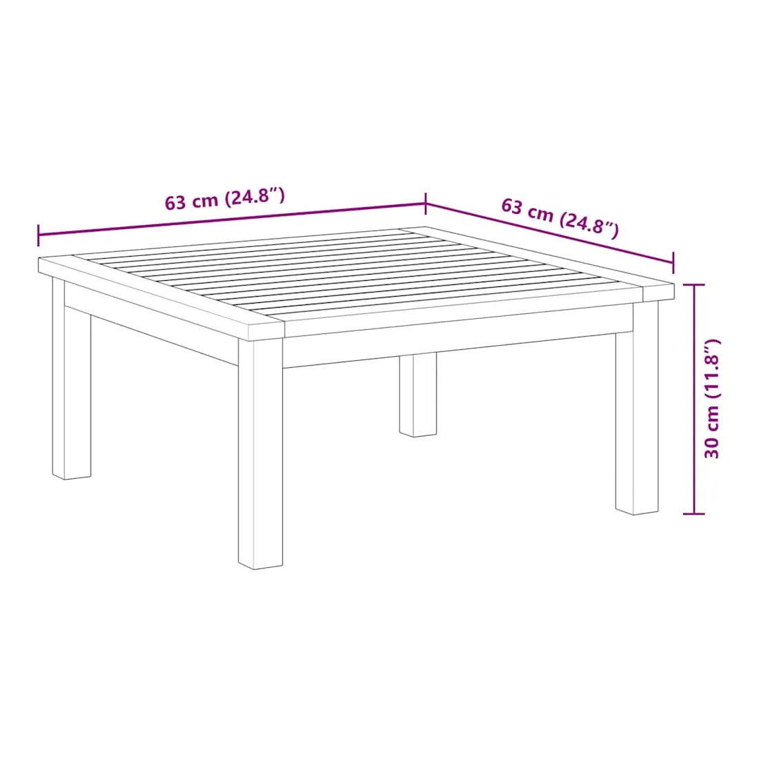 Table de salon de jardin 63x63x30 cm Bois solide d'acacia