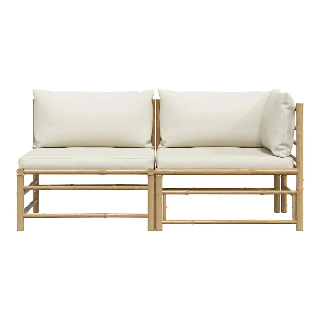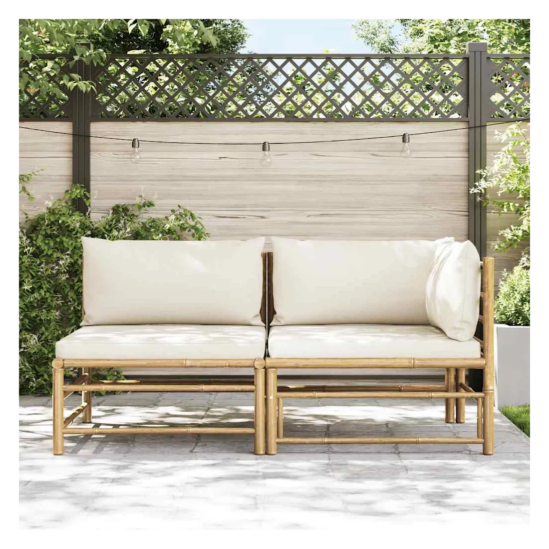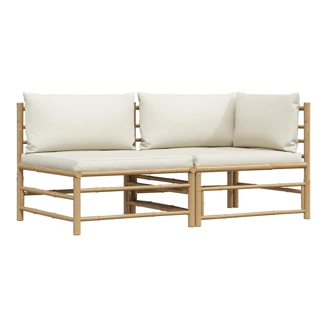Salon de jardin 2 pcs avec coussins blanc crème Bambou