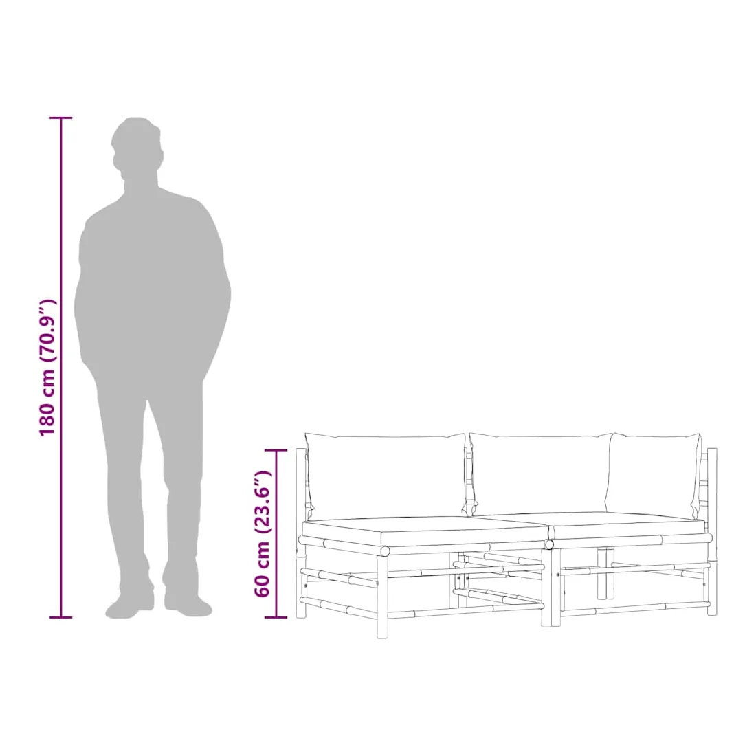 • Dimensions du canapé de milieu : 65 x 70 x 60 cm (l x P x H)