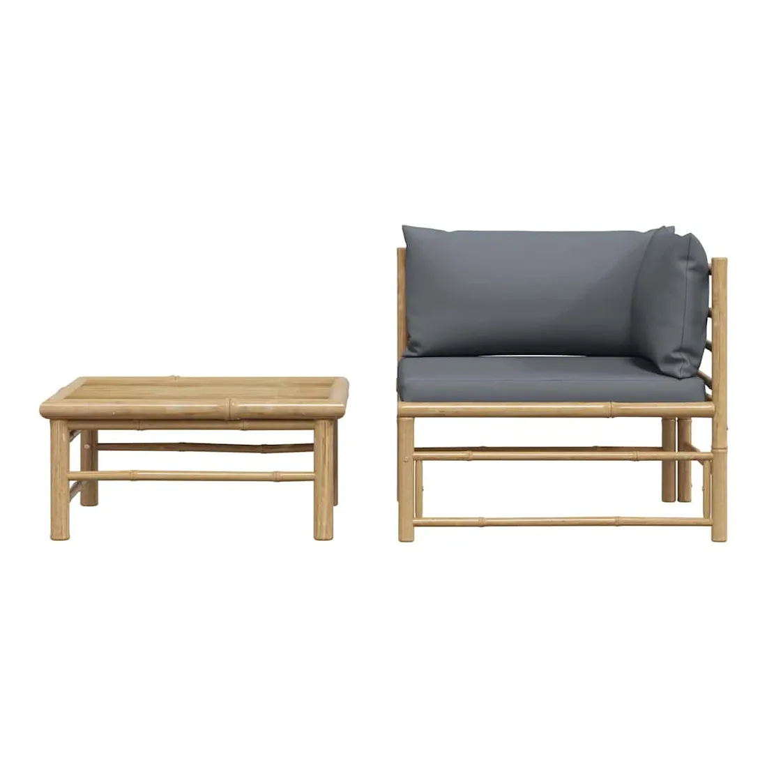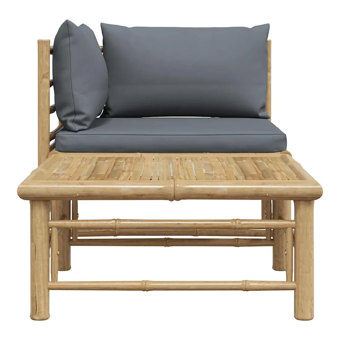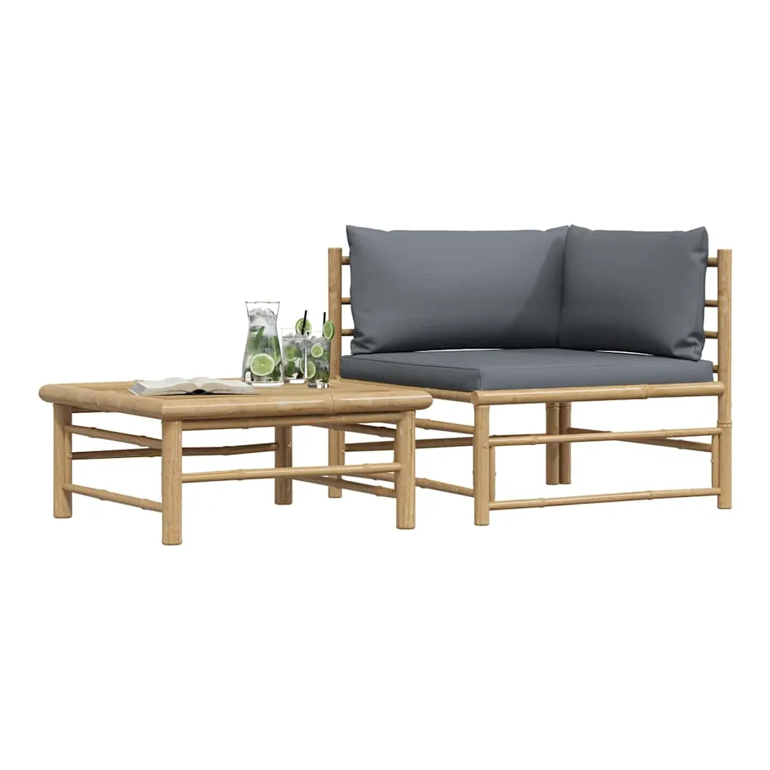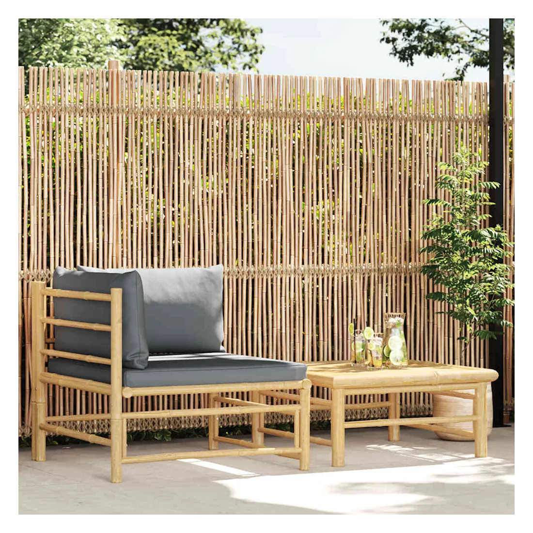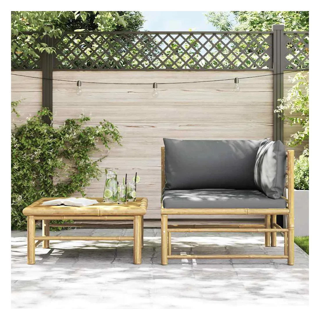 Créez un coin salon relaxant avec cet élégant salon de jardin. Cet ensemble de meubles d'extérieur est fabriqué en bambou, ce qui le rend robuste et facile à nettoyer. Les coussins de siège et de dossier bien rembourrés ajoutent du confort supplémentaire à votre temps de détente. La table d’appoint est idéale pour placer les aliments et les boissons à portée de main. Avec une construction légère, l’ensemble de meubles est facile à déplacer. Vous pouvez placer l’ensemble dans n’importe quel arrangement selon votre préférence, grâce à la conception modulaire. Remarque : Afin de prolonger la durée de vie de vos meubles d'extérieur, nous vous recommandons de les nettoyer régulièrement et de ne pas les laisser à l'extérieur sans protection inutilement.Nettoyage : Utiliser une solution savonneuse douceStockage : Si possible, stockez dans un endroit frais et sec à l'intérieur. Si le produit est stocké à l'extérieur, protégez-le avec une housse imperméable. Essuyez et séchez l'excès d'eau ou de neige des surfaces planes après la pluie ou une chute de neige. Permettez une circulation d'air suffisante afin d'éviter les dommages liés à l'humidité.