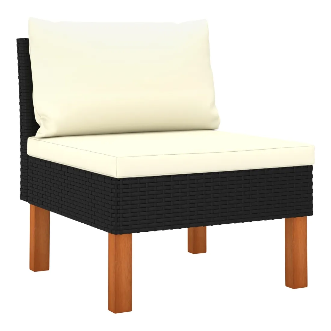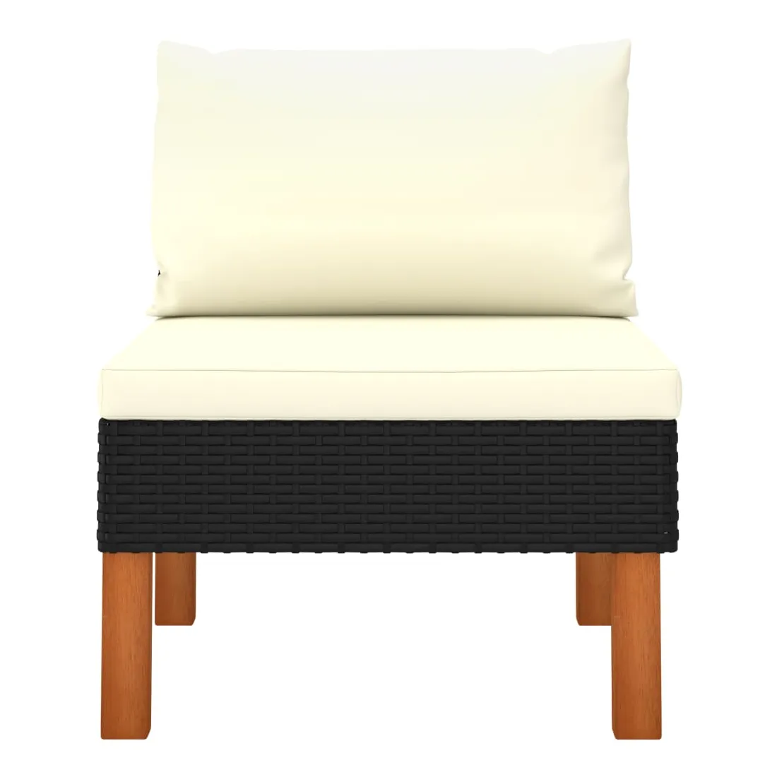 Ce canapé central est un choix idéal pour vous détendre et profiter du beau temps, faire une sieste ou discuter avec votre famille ou vos amis. Doté d’un cadre en acier enduit de poudre recouvert de résine tressée, ce siège central est robuste et facile à nettoyer. Les pieds en bois d’eucalyptus massif contribuent à sa robustesse et à sa stabilité. De plus, les coussins ajoutent du confort supplémentaire à votre temps de détente. Équipé de fermetures éclair, les housses de coussin sont amovibles et lavables. Il est également léger et modulaire, ce qui le rend complètement flexible et facile à déplacer pour convenir à toute configuration. Vous pouvez le combiner avec d’autres segments modulaires disponibles dans le menu déroulant pour créer vos propres configurations de salon de jardin ! Remarque importante : Nous vous recommandons de couvrir le canapé de jardin pendant la pluie, la neige et le gel pour une utilisation durable.