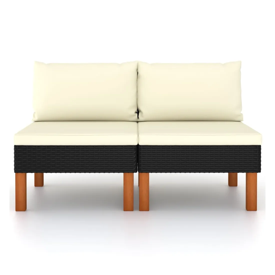 Ces canapés centraux sont des choix idéaux pour vous détendre et profiter du beau temps, faire une sieste ou discuter avec votre famille ou vos amis. Doté d’un cadre en acier enduit de poudre recouvert de résine tressée, le siège central est robuste et facile à nettoyer. Les pieds en bois d’eucalyptus massif contribuent à sa robustesse et à sa stabilité. De plus, les coussins ajoutent du confort supplémentaire à votre temps de détente. Équipées de fermetures éclair, les housses de coussin sont amovibles et lavables. Ils sont également légers et modulaires, ce qui les rend complètement flexibles et faciles à déplacer pour convenir à toute configuration. Remarque importante : Nous vous recommandons de couvrir le canapé de jardin pendant la pluie, la neige et le gel pour une utilisation durable.