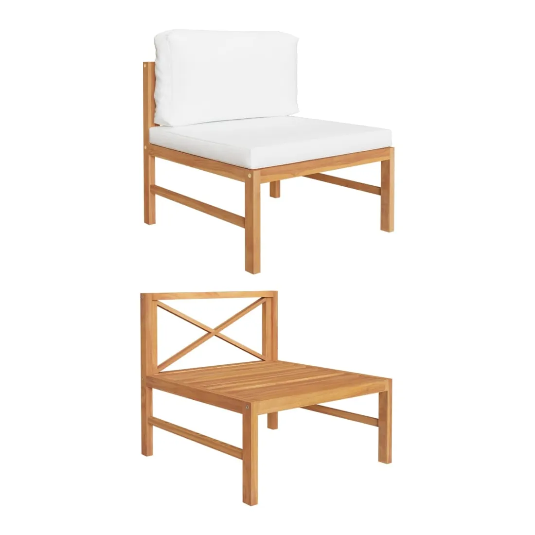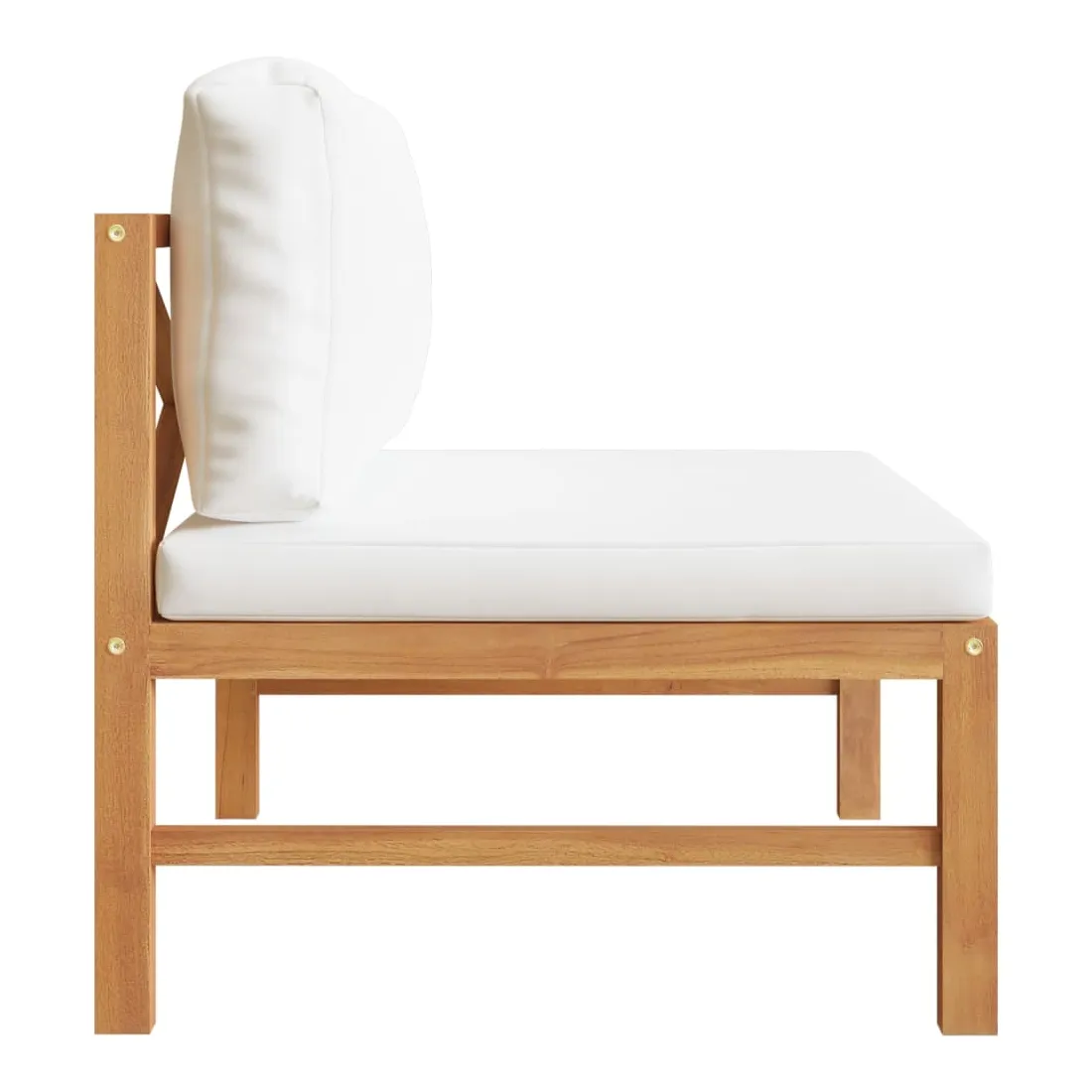Ce canapé central en bois, se démarquant par son design et ses coussins moelleux, est un excellent supplément à votre jardin, terrasse ou patio pour discuter avec votre famille et vos amis ou simplement profiter du beau temps. Construit à partir de bois dur de teck extrêmement durable, ce meuble en teck a été assaisonné, séché au four puis poncé finement pour lui donner un aspect très lisse. Le bois de teck est connu pour sa résistance exceptionnelle aux intempéries, ce qui le rend beaucoup plus adapté aux meubles de jardin que tout autre type de bois. Le bois de teck est le choix parfait si vous souhaitez acheter un meuble de jardin durable. Les coussins de siège et de dossier sont bien rembourrés et offrent un confort optimal. La surface poncée est facile à nettoyer avec un chiffon humide. Le canapé de jardin est flexible et facile à déplacer, ce qui vous permet de créer facilement différentes configurations pour répondre à vos besoins. Remarque : afin de prolonger la durée de vie de vos meubles d'extérieur, nous vous recommandons de les nettoyer régulièrement et de ne pas les laisser à l'extérieur sans protection inutilement.Nettoyage : utiliser une solution savonneuse douceStockage : si possible, stockez dans un endroit frais et sec à l'intérieur. Si le produit est stocké à l'extérieur, protégez-le avec une housse imperméable. Essuyez et séchez l'excès d'eau ou de neige des surfaces planes après la pluie ou une chute de neige. Permettez une circulation d'air suffisante afin d'éviter les dommages liés à l'humidité.