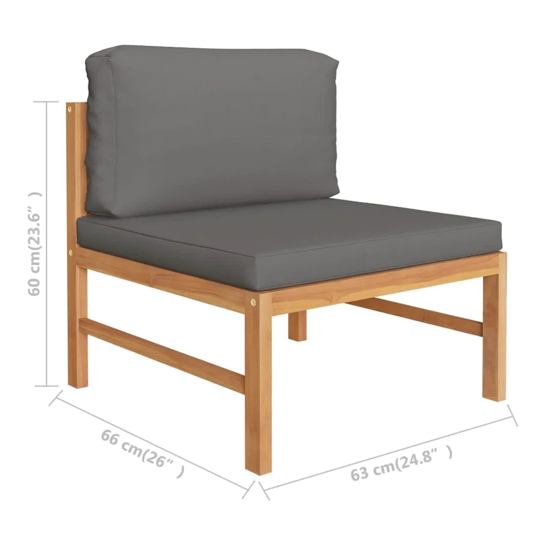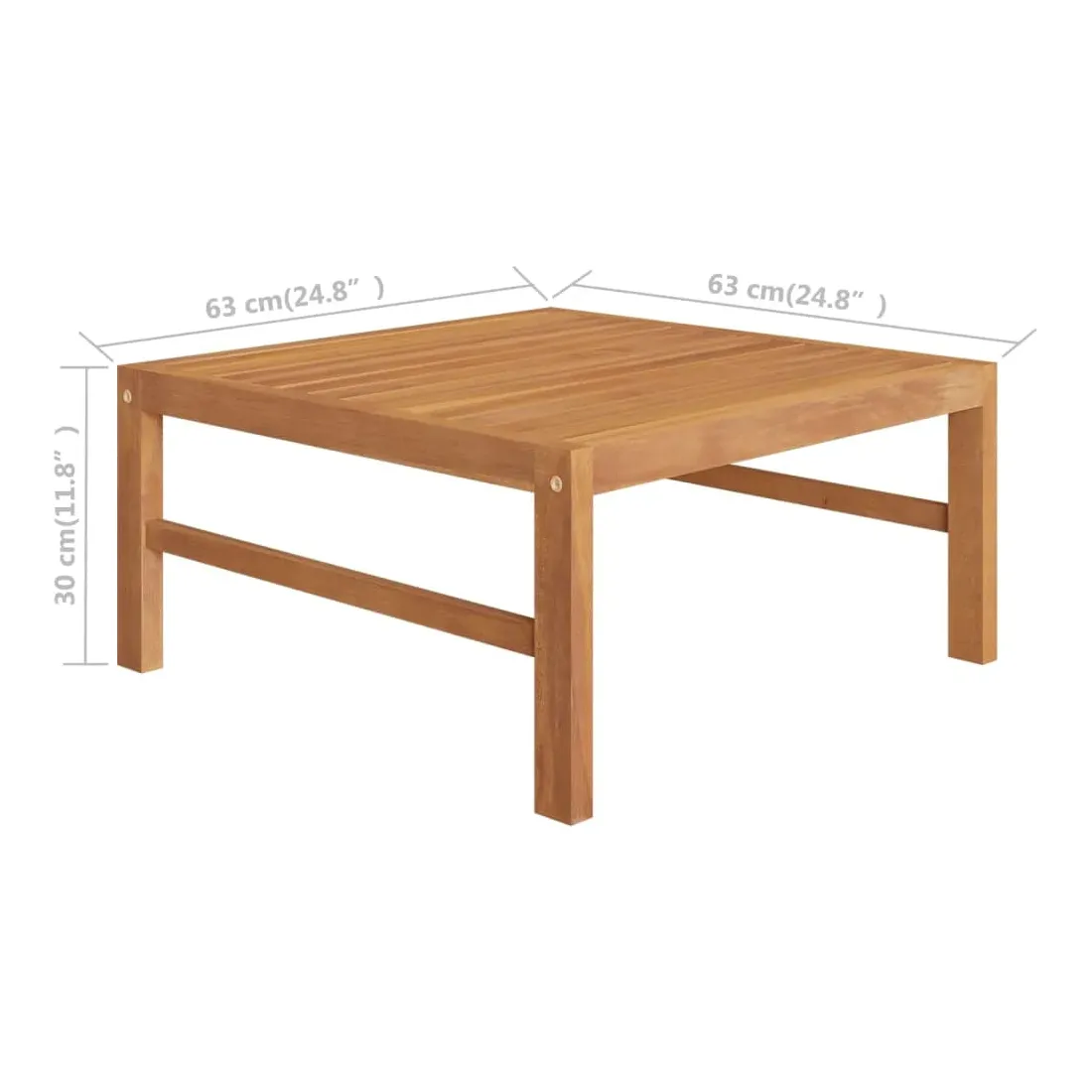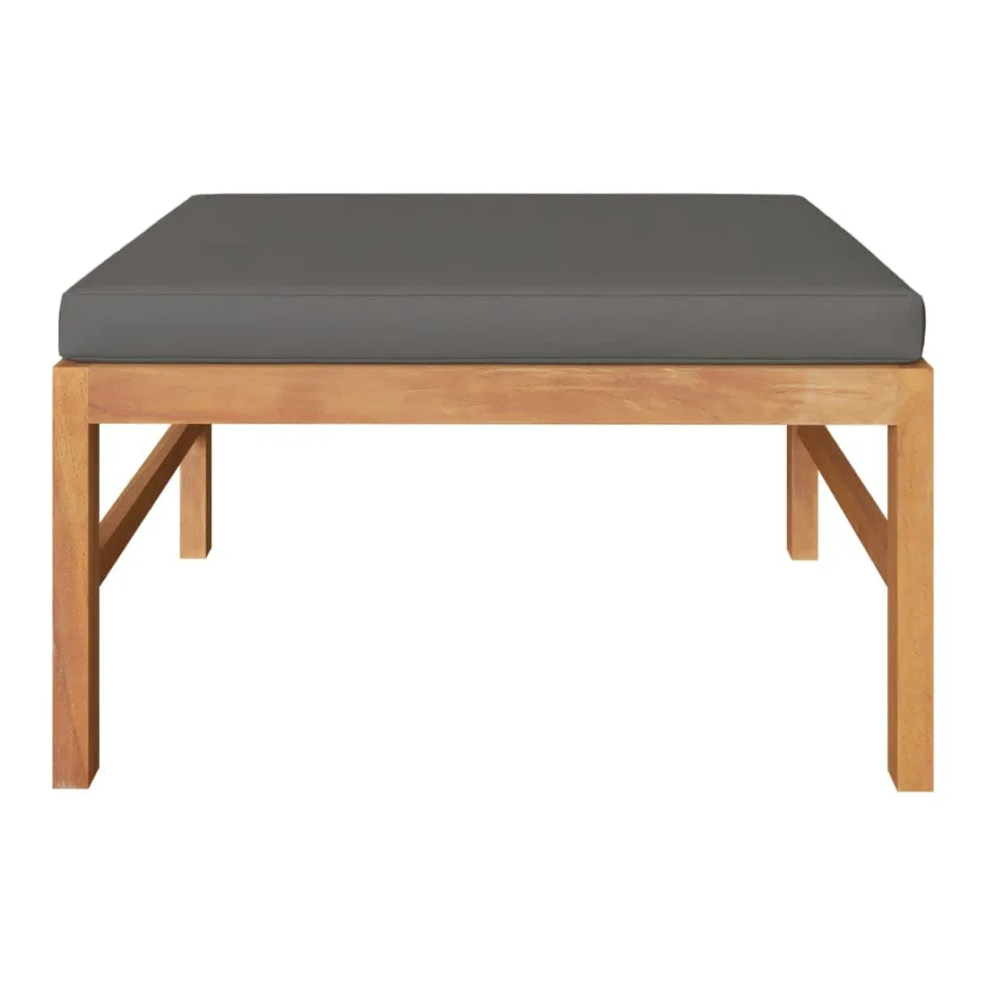 Cet ensemble de salon de jardin en bois, se démarquant par son design et ses coussins moelleux, est un excellent supplément à votre jardin, terrasse ou patio pour discuter avec votre famille et vos amis ou simplement profiter du beau temps. Construit à partir de bois dur de teck extrêmement durable, cet ensemble de meubles en teck a été chevronné, séché au four puis poncé finement pour lui donner un aspect très lisse. Le bois de teck est connu pour sa résistance exceptionnelle et sa résistance aux intempéries, ce qui le rend bien plus adapté aux meubles de jardin que tout autre type de bois. Le bois de teck est le choix parfait si vous souhaitez acheter un meuble de jardin durable. La surface poncée est facile à nettoyer avec un chiffon humide. Les coussins d'assise et de dossier bien rembourrés, ainsi que le repose-pied inclus, ajoutent un confort maximal. La table est idéale pour placer des boissons et de la nourriture.