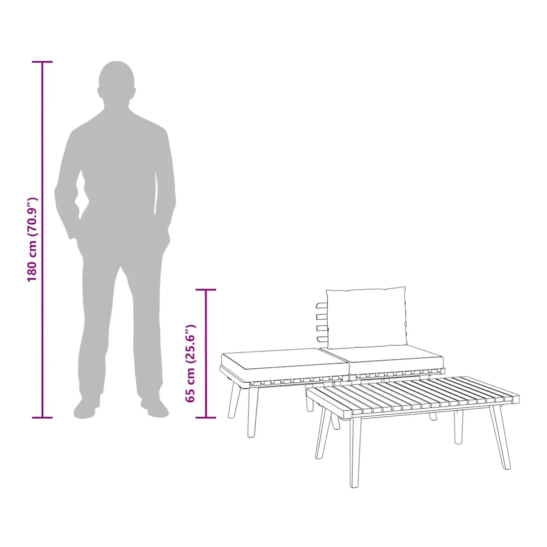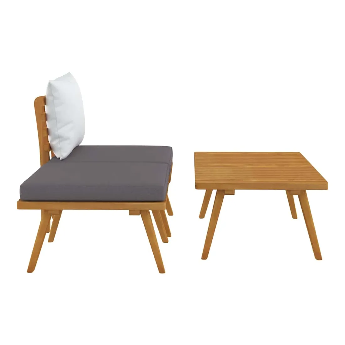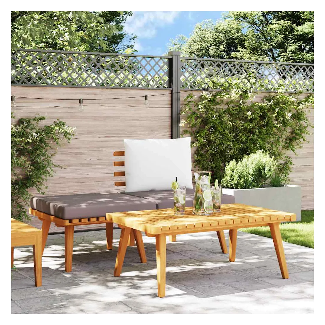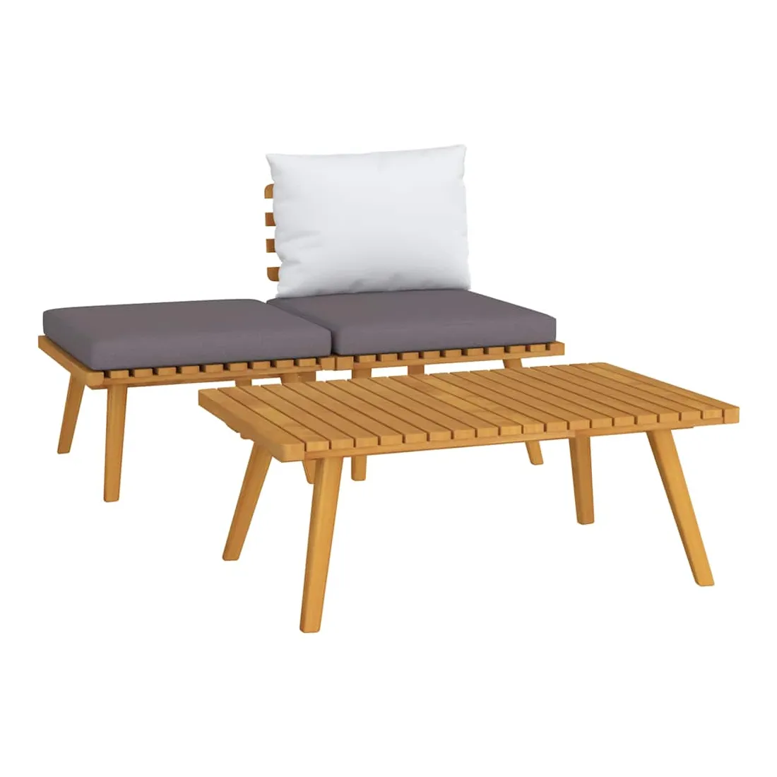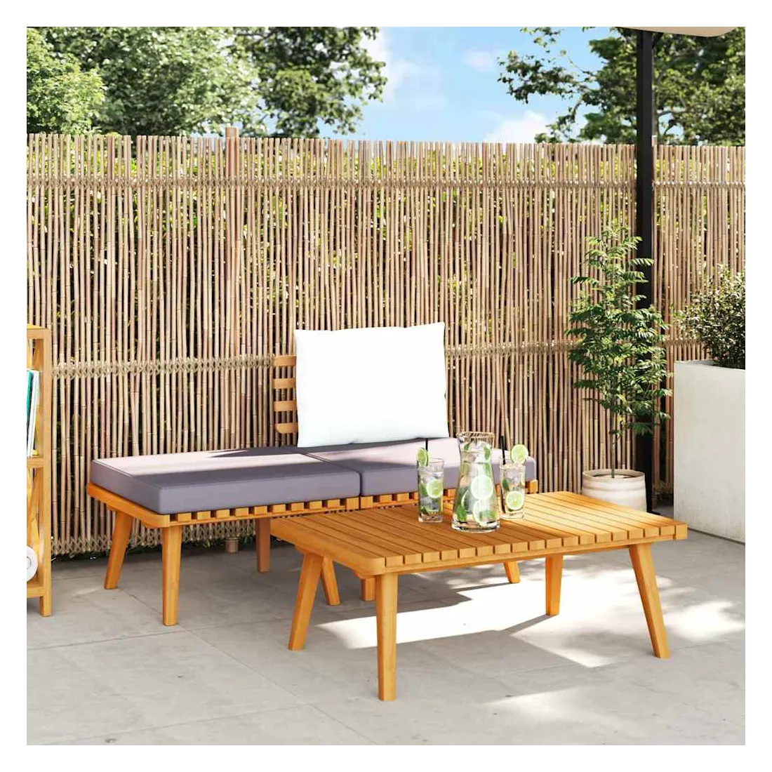 Cet ensemble de salon de jardin est un excellent choix pour vous détendre et profiter du temps, faire une sieste ou discuter avec votre famille ou vos amis. Avec un design à lattes intemporel, l’ensemble de salon en bois ajoute une touche de charme rustique à votre patio, terrasse ou jardin. Fabriqué en bois d’acacia massif, l’ensemble de meubles d’extérieur est résistant aux intempéries et hautement durable. Combiné avec les coussins bien rembourrés, ce salon de jardin offre le plus grand confort. Vous pouvez le combiner avec d’autres segments modulaires pour créer vos propres configurations de salon de jardin ! Remarque : Afin de prolonger la durée de vie de vos meubles d'extérieur, nous vous recommandons de les nettoyer régulièrement et de ne pas les laisser à l'extérieur sans protection inutilement.Nettoyage : Utiliser une solution savonneuse douceStockage : Si possible, stockez dans un endroit frais et sec à l'intérieur. Si le produit est stocké à l'extérieur, protégez-le avec une housse imperméable. Essuyez et séchez l'excès d'eau ou de neige des surfaces planes après la pluie ou une chute de neige. Permettez une circulation d'air suffisante afin d'éviter les dommages liés à l'humidité.