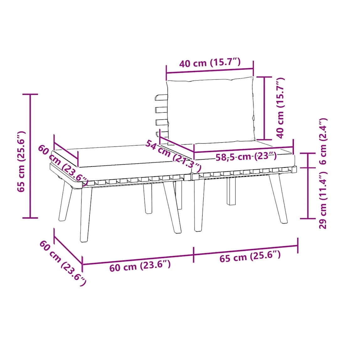 - Dimensions du repose-pied : 60 x 60 x 29 cm (l x P x H)