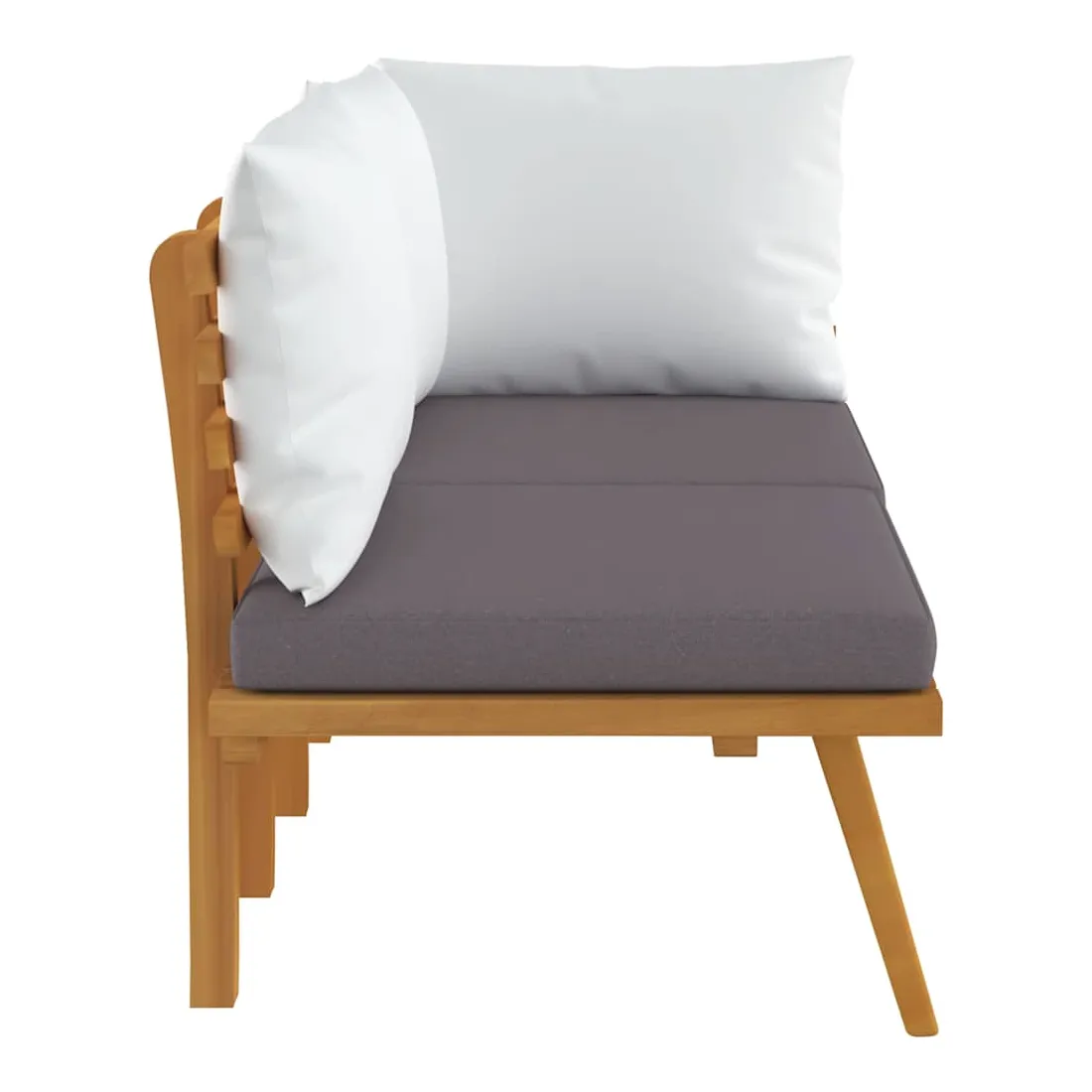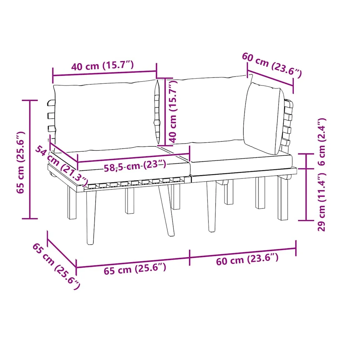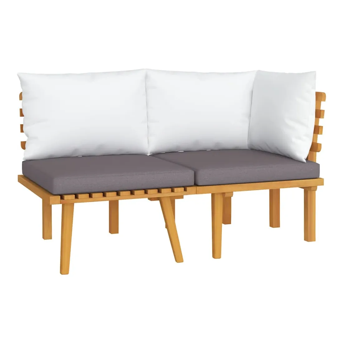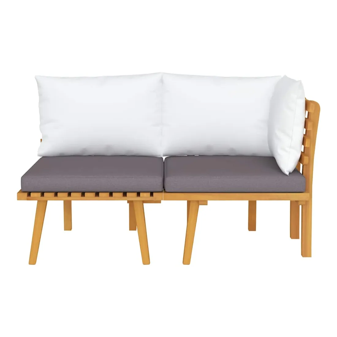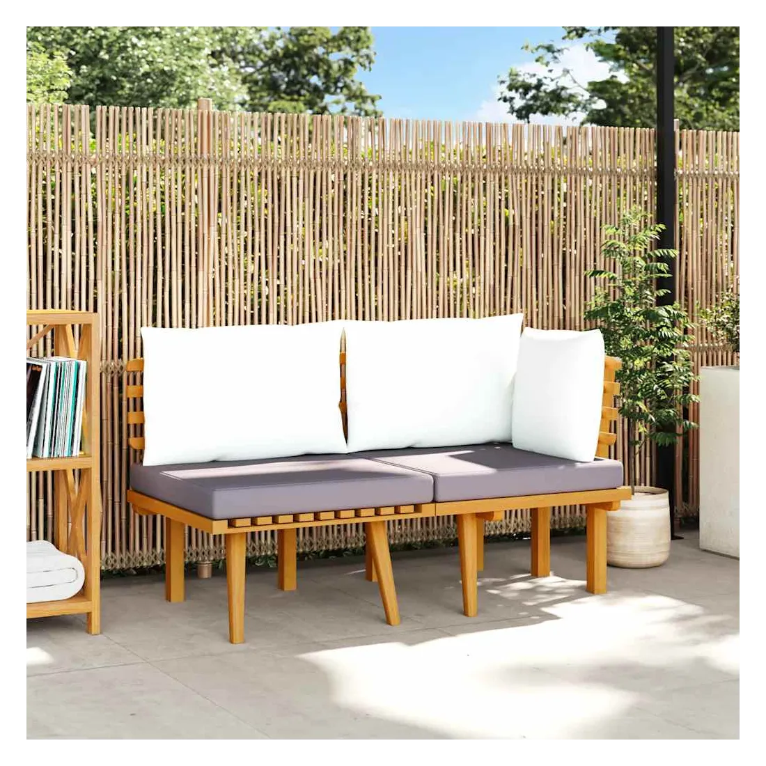 Cet ensemble de salon de jardin est un excellent choix pour vous détendre et profiter du temps, faire une sieste ou discuter avec votre famille ou vos amis. Avec un design à lattes intemporel, l’ensemble de salon en bois ajoute une touche de charme rustique à votre patio, terrasse ou jardin. Fabriqué en bois d’acacia massif, l’ensemble de meubles d’extérieur est résistant aux intempéries et hautement durable. Combiné avec les coussins bien rembourrés, ce salon de jardin offre le plus grand confort. Vous pouvez le combiner avec d’autres segments modulaires pour créer vos propres configurations de salon de jardin ! Remarque : Afin de prolonger la durée de vie de vos meubles d'extérieur, nous vous recommandons de les nettoyer régulièrement et de ne pas les laisser à l'extérieur sans protection inutilement.Nettoyage : Utiliser une solution savonneuse douceStockage : Si possible, stockez dans un endroit frais et sec à l'intérieur. Si le produit est stocké à l'extérieur, protégez-le avec une housse imperméable. Essuyez et séchez l'excès d'eau ou de neige des surfaces planes après la pluie ou une chute de neige. Permettez une circulation d'air suffisante afin d'éviter les dommages liés à l'humidité.