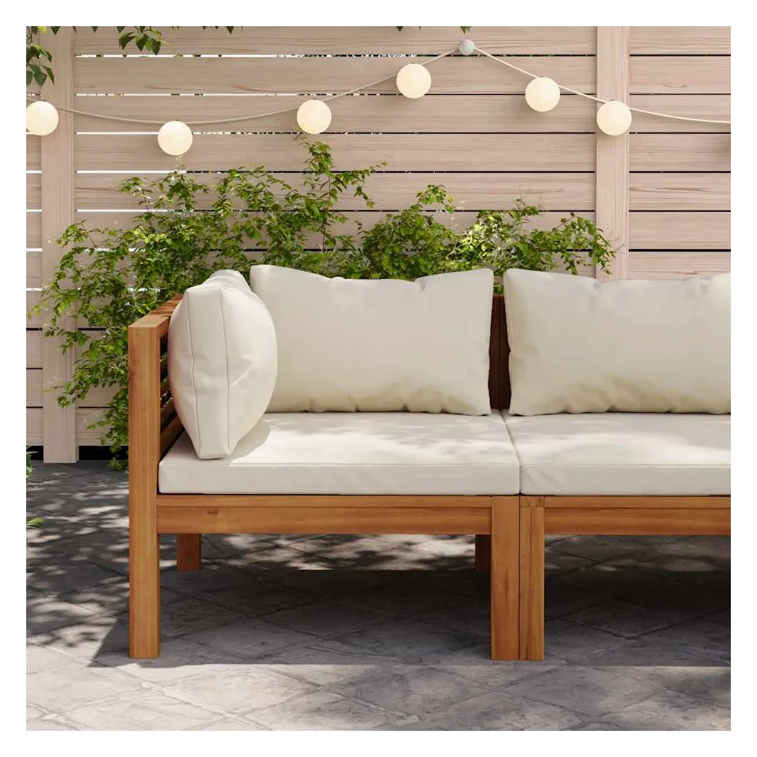Ce canapé d'angle sectionnel en bois allie style et fonctionnalité et est conçu pour être utilisé à l’extérieur toute l’année. Fabriqué en bois d'acacia massif, le siège d'angle est solide, robuste et durable. Sa finition à l'huile rend le canapé adapté à une utilisation dehors. Les coussins d'assise et de dossier rembourrés offrent le confort suprême pendant votre expérience d'assise. Vous pouvez le combiner avec d'autres segments modulaires disponibles pour créer vos propres configurations de salon de jardin ! Remarque : Afin de prolonger la durée de vie de vos meubles d'extérieur, nous vous recommandons de les nettoyer régulièrement et de ne pas les laisser à l'extérieur sans protection inutilement.Nettoyage : Utiliser une solution savonneuse douce.Stockage : Si possible, stockez dans un endroit frais et sec à l'intérieur. Si le produit est stocké à l'extérieur, protégez-le avec une housse imperméable. Essuyez et séchez l'excès d'eau ou de neige des surfaces planes après la pluie ou une chute de neige. Permettez une circulation d'air suffisante afin d'éviter les dommages liés à l'humidité.