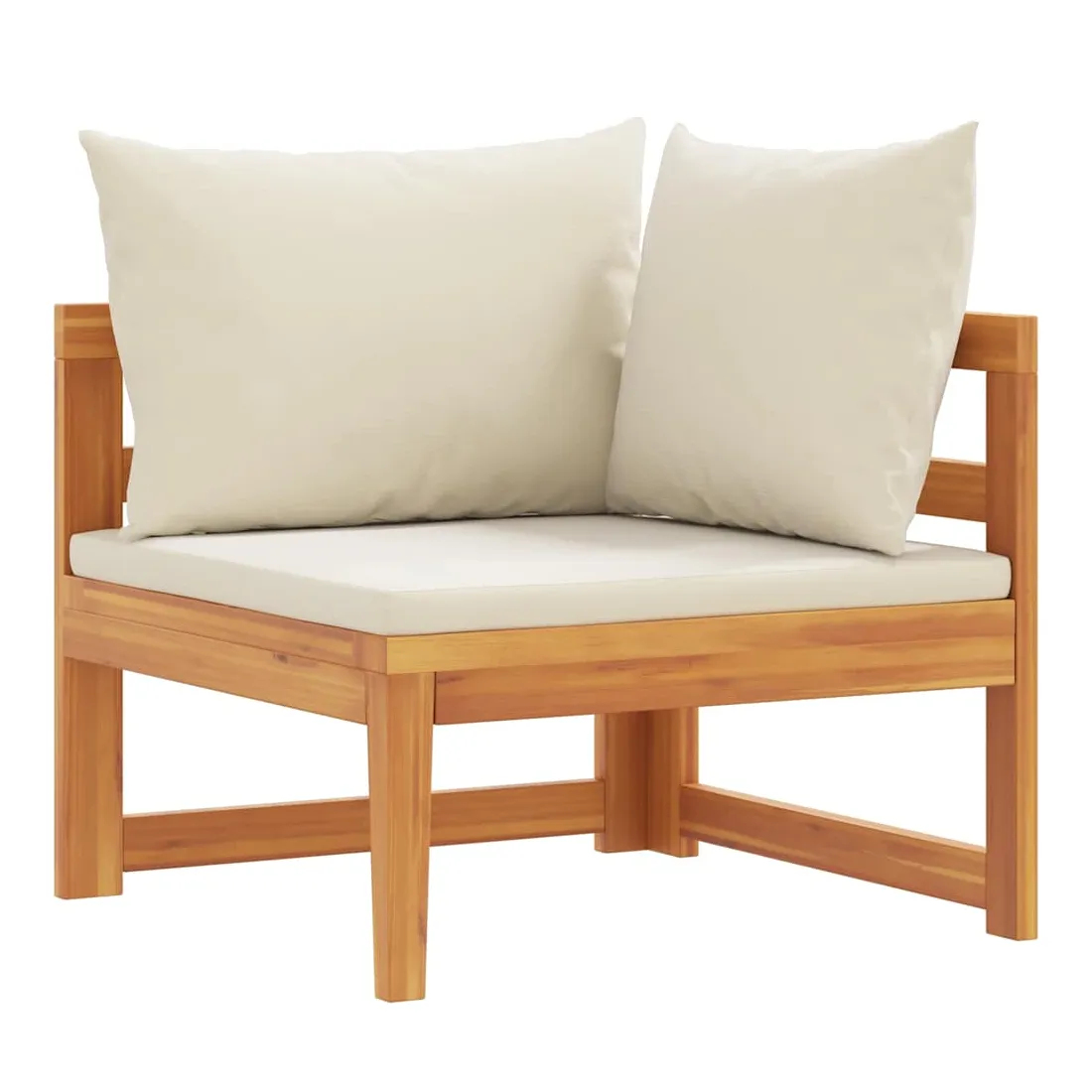 Profitez d’un moment de détente agréable avec vos amis ou votre famille dans l’espace d'extérieur sur ce canapé d'angle en bois ! Ce canapé d'angle de jardin est fabriqué en bois d'acacia massif, un bois dur aux grains denses. Ce canapé d'angle d'extérieur au design magnifique est stable, durable et accrocheur. De plus, le savoir-faire exquis et les beaux grains de bois rendent chaque pièce légèrement différente l'une de l'autre. En outre, les coussins inclus ajoutent plus de confort tout en vous reposant. Remarque : afin de prolonger la durée de vie de vos meubles d'extérieur, nous vous recommandons de les nettoyer régulièrement et de ne pas les laisser à l'extérieur sans protection inutilement.Nettoyage : Utiliser une solution savonneuse douce.Stockage : si possible, stockez dans un endroit frais et sec à l'intérieur. Si le produit est stocké à l'extérieur, protégez-le avec une housse imperméable. Essuyez et séchez l'excès d'eau ou de neige des surfaces planes après la pluie ou une chute de neige. Permettez une circulation d'air suffisante afin d'éviter les dommages liés à l'humidité.