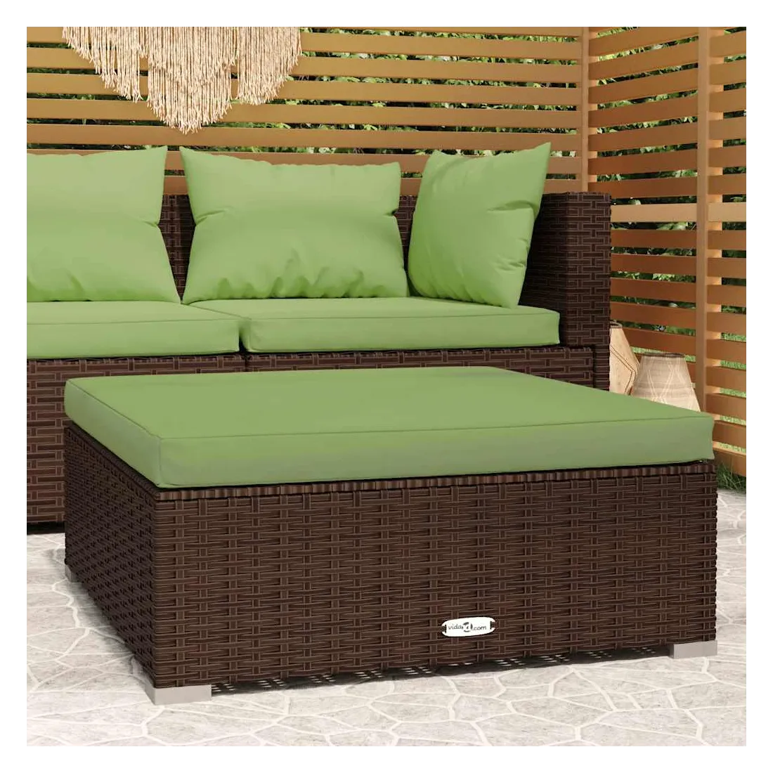 Détendez-vous et profitez de vos loisirs avec ce repose-pied de jardin très tendance ! Combiné avec d'autres sièges, il peut répondre à une variété de besoins différents. Cadre robuste : ce repose-pied de patio est doté d'un cadre solide en acier enduit de poudre et de pieds en plastique chromé, ce qui est très durable.Matériau haut de gamme : le repose-pied sectionnel est conçu avec de la résine tressée résistante à l'eau, ce qui le rend facile à nettoyer, résistant à l'usure et adapté à une utilisation quotidienne à l'extérieur.Design modulaire : la conception modulaire permet de placer le pouf dans n'importe quelle disposition ou de le combiner avec d'autres segments modulaires pour répondre à vos besoins.Coussin confortable : le coussin bien rembourré et amovible offre un confort optimal pour votre assise en plein air. Remarque :Afin de prolonger la durée de vie de votre mobilier d'extérieur, nous vous recommandons de le protéger avec une housse imperméable.