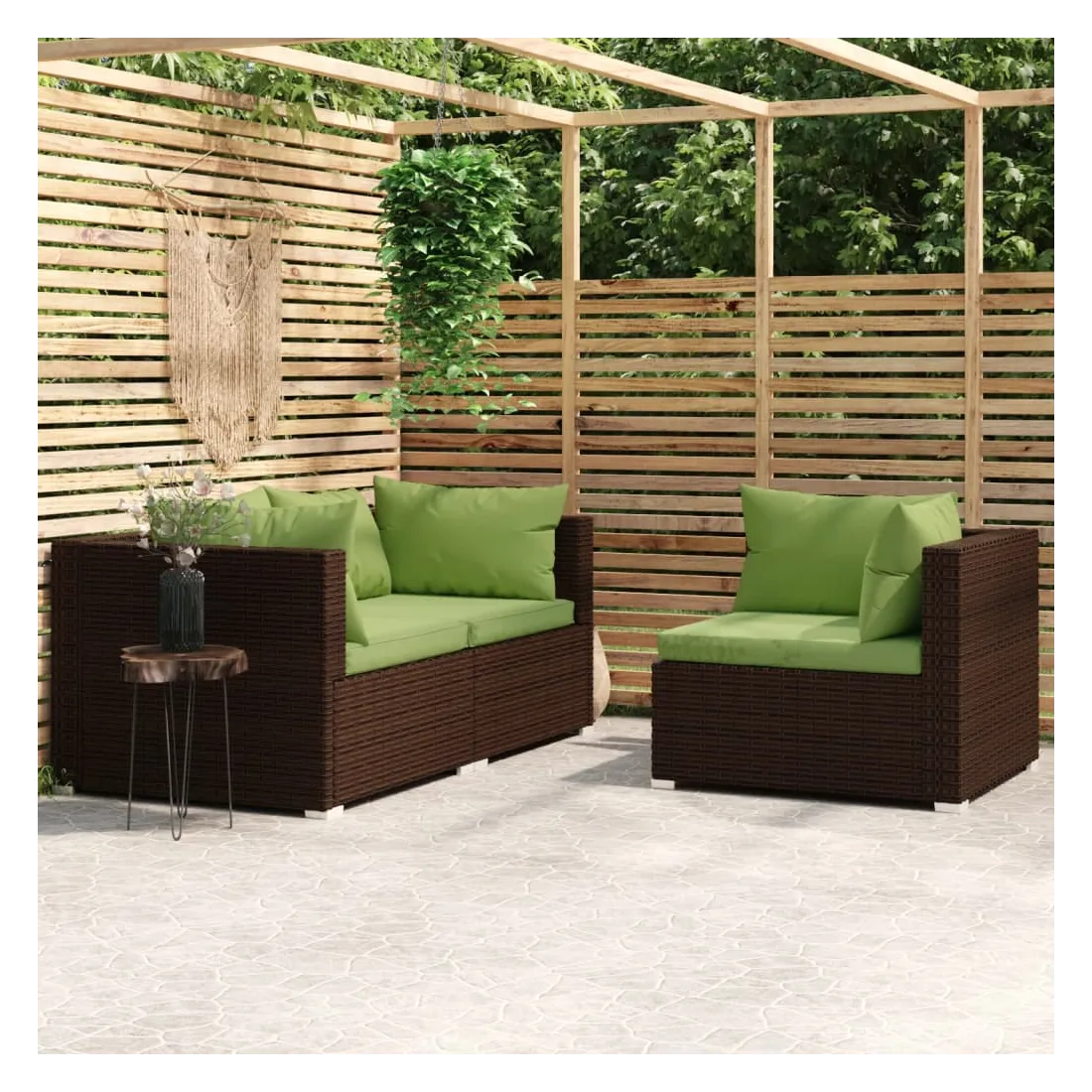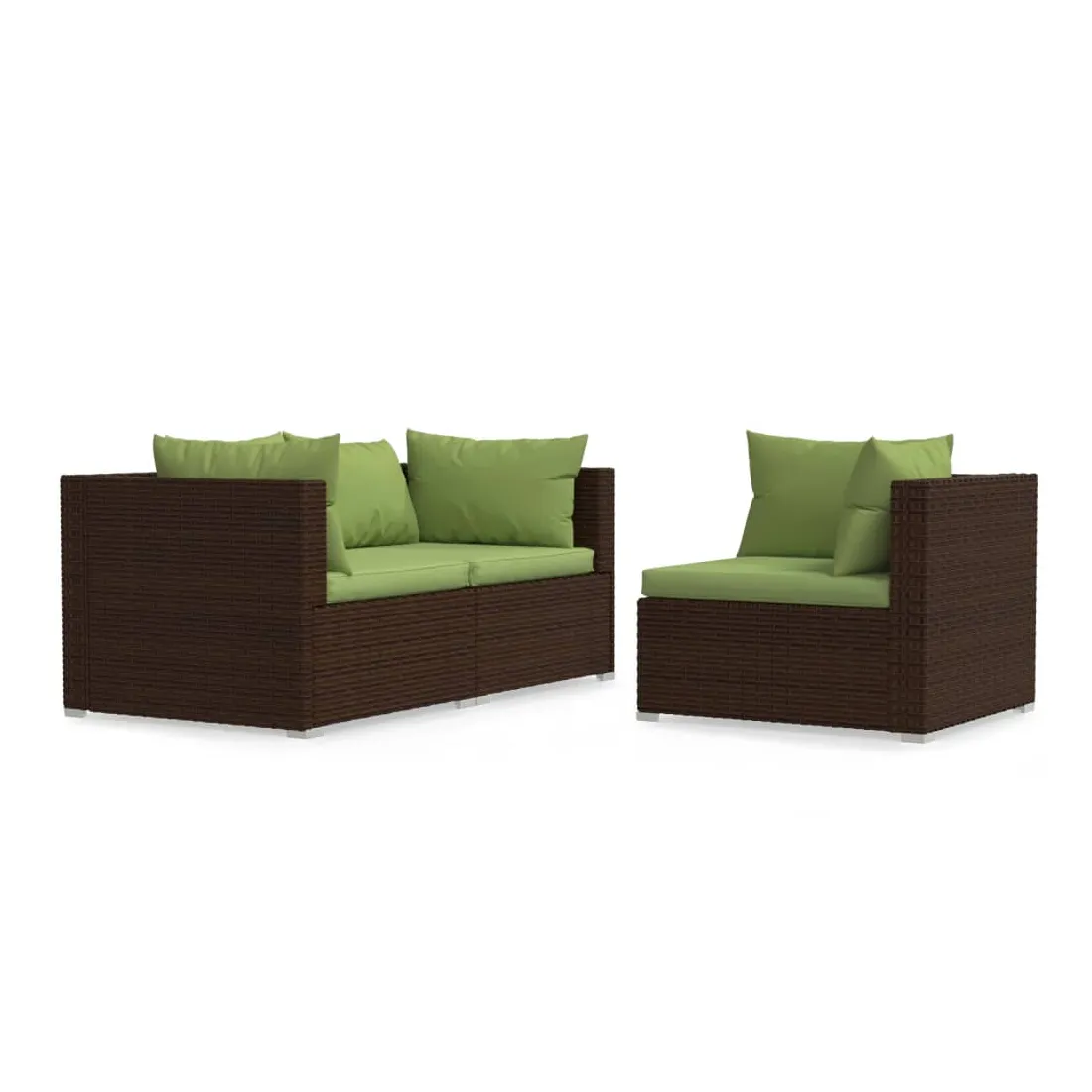 Salon de jardin 3 pcs avec coussins Marron Résine tressée