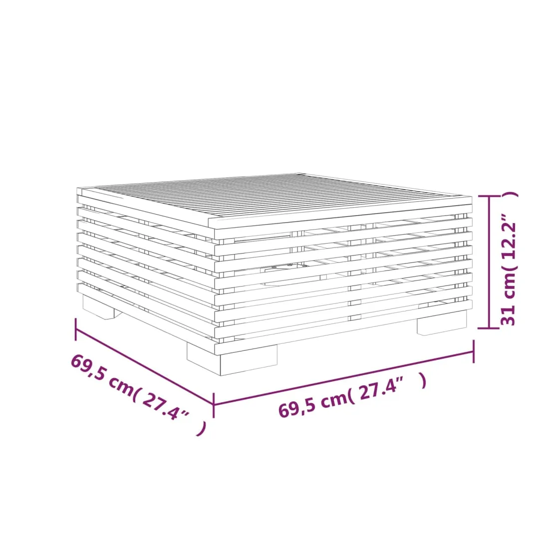 - Dimensions du repose-pied : 69,5 x 69,5 x 31 cm (L x l x H)