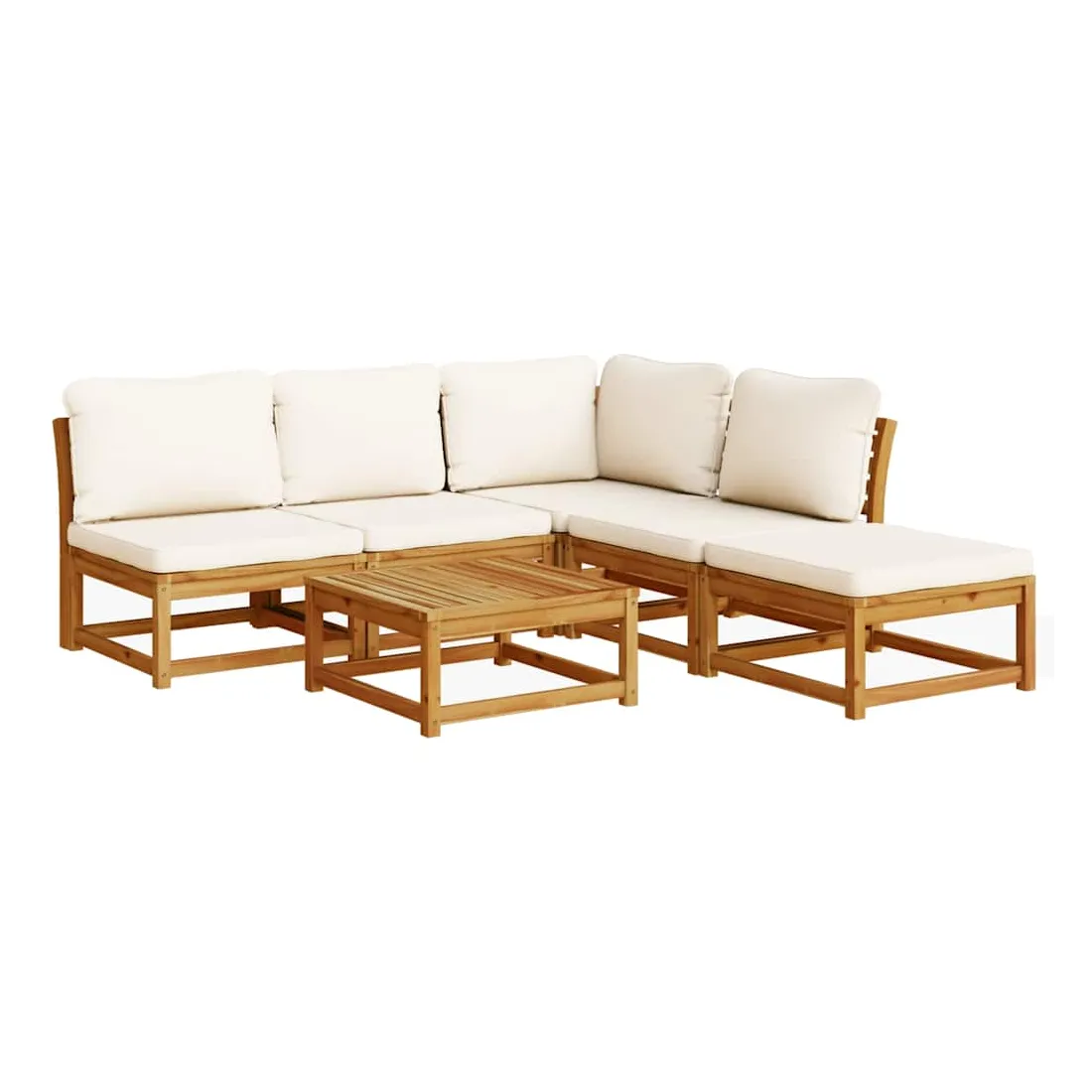 Cet ensemble de salon de jardin en bois avec coussins a un design élégant et constitue un excellent choix pour vous détendre et profiter du jardin ou du patio. Bois d'acacia massif : le bois d'acacia massif est un matériau naturel magnifique. Le bois d'acacia un bois dur tropical, qui est dense, robuste et durable.Expérience d'assise confortable : le dossier et les coussins rembourrés rendent l’ensemble de canapé de jardin plus confortable pour s'asseoir.Conception à lattes : la conception à lattes de l’ensemble de meubles en bois empêche efficacement l'eau de s'accumuler, ce qui garantit que l'assise reste sèche et exempte de tout risque de pourriture.Conception modulaire : cet ensemble de meubles d'extérieur a une conception modulaire, ce qui le rend complètement flexible et facile à déplacer, afin que vous puissiez créer un agencement de meubles d'extérieur personnalisé. Bon à savoir :Pour que vos meubles d'extérieur restent beaux, nous vous recommandons de les protéger avec une housse imperméable.