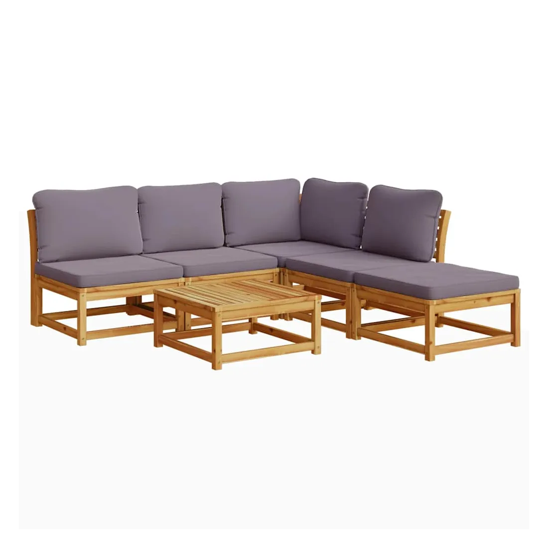 Cet ensemble de salon de jardin en bois avec coussins a un design élégant et constitue un excellent choix pour vous détendre et profiter du jardin ou du patio. Bois d'acacia massif : le bois d'acacia massif est un matériau naturel magnifique. Le bois d'acacia un bois dur tropical, qui est dense, robuste et durable.Expérience d'assise confortable : le dossier et les coussins rembourrés rendent l’ensemble de canapé de jardin plus confortable pour s'asseoir.Conception à lattes : la conception à lattes de l’ensemble de meubles en bois empêche efficacement l'eau de s'accumuler, ce qui garantit que l'assise reste sèche et exempte de tout risque de pourriture.Conception modulaire : cet ensemble de meubles d'extérieur a une conception modulaire, ce qui le rend complètement flexible et facile à déplacer, afin que vous puissiez créer un agencement de meubles d'extérieur personnalisé. Bon à savoir :Pour que vos meubles d'extérieur restent beaux, nous vous recommandons de les protéger avec une housse imperméable.