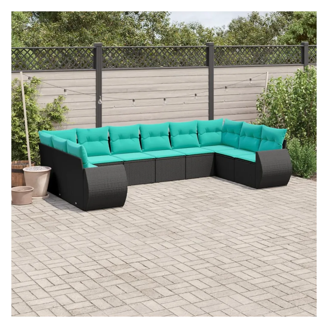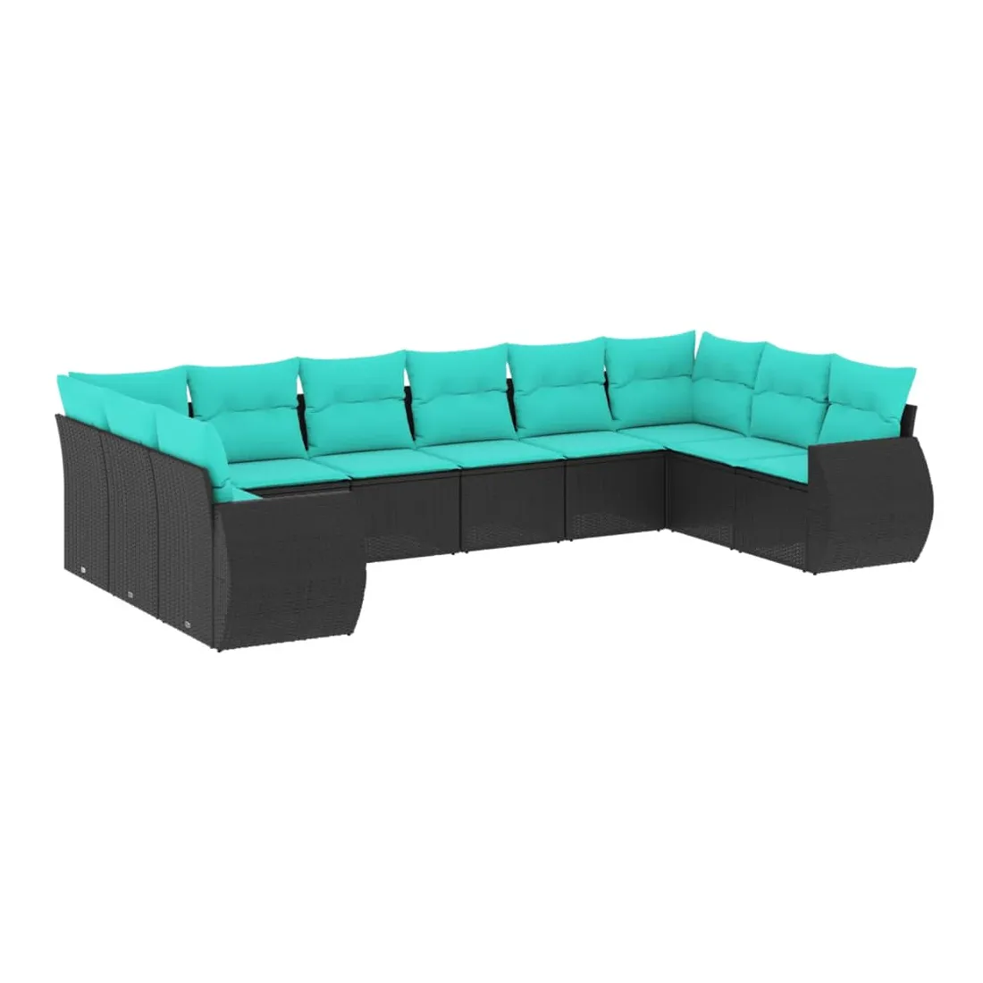 Salon de jardin 10 pcs avec coussins noir résine tressée