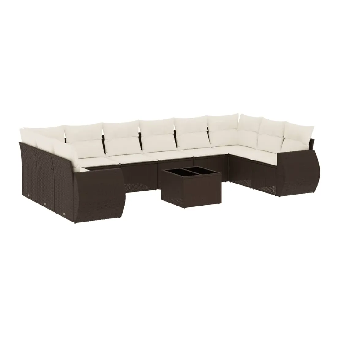 Salon de jardin et coussins 11 pcs marron résine tressée
