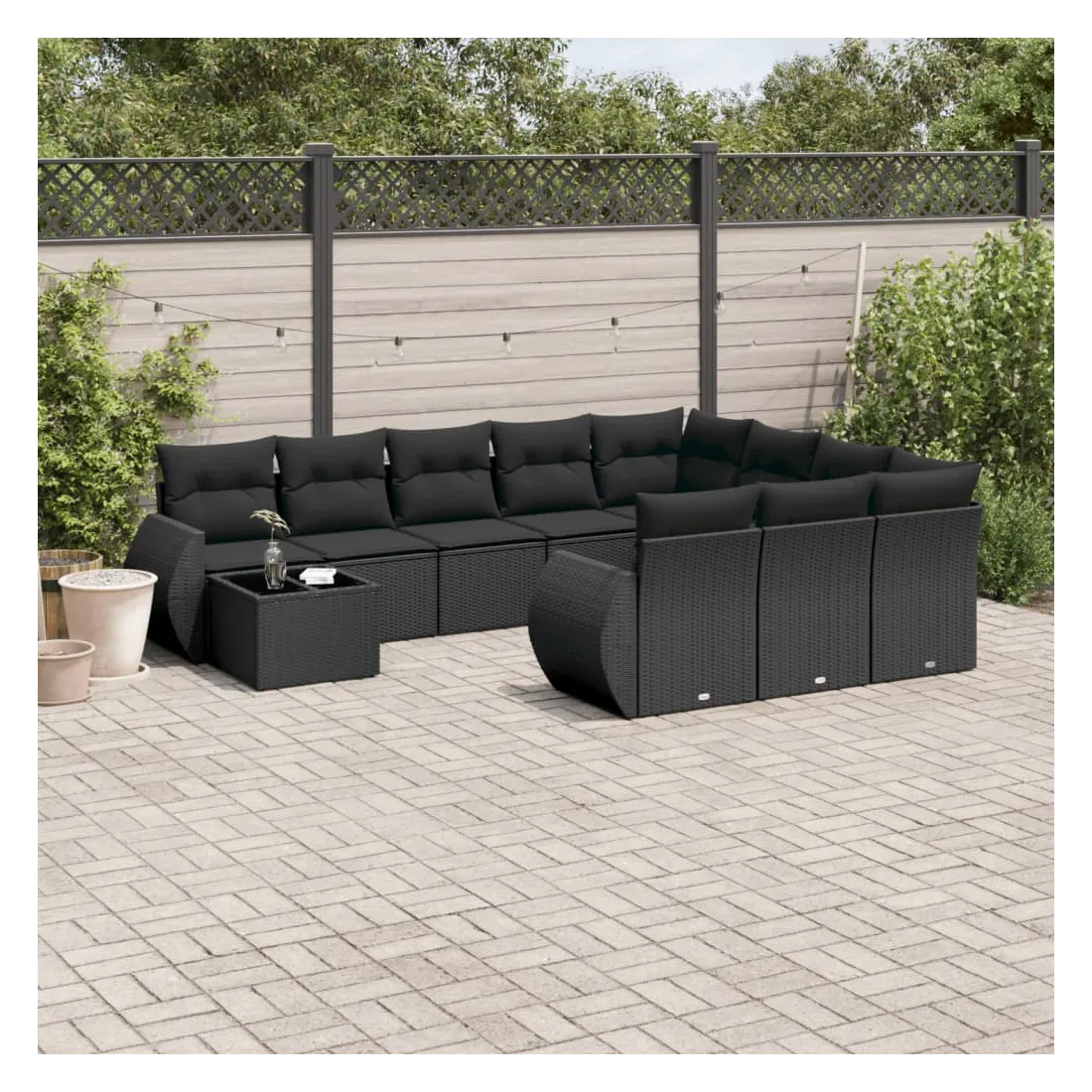 Salon de jardin 11 pcs avec coussins noir résine tressée