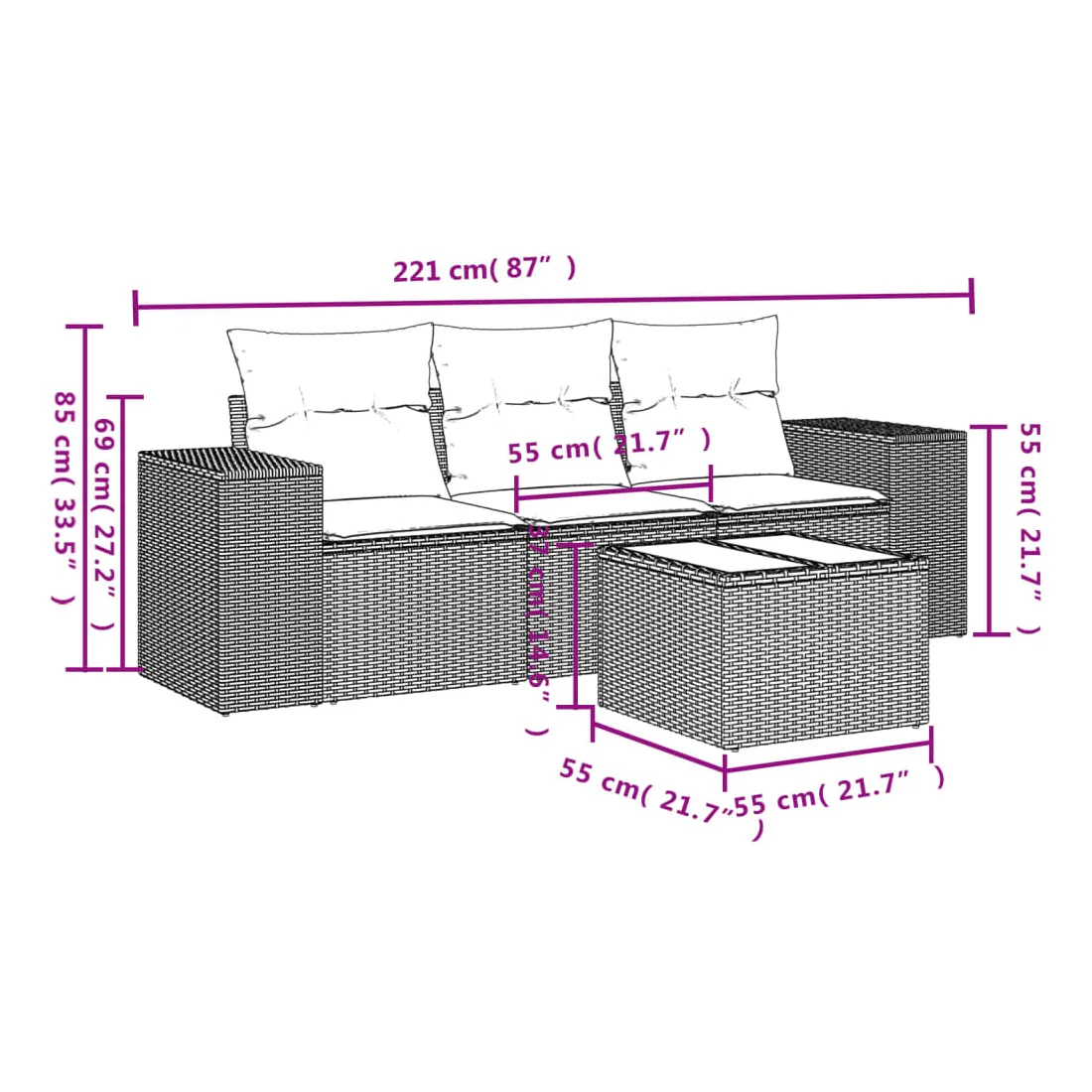 - Dimensions : 55 x 55 x 37 cm (L x l x H)
