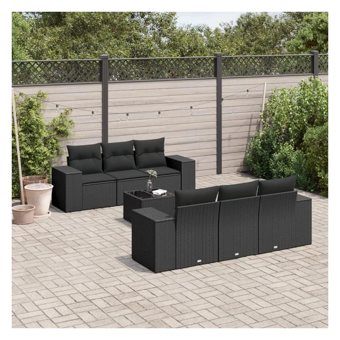Cet ensemble de canapés de jardin est le complément parfait de votre arrière-cour, terrasse ou patio, offrant un espace confortable et accueillant pour discuter avec la famille et les amis ou simplement se détendre et profiter de l'extérieur. Matériau durable : la résine tressée, également connue sous le nom de poly rotin, est un matériau synthétique solide et nécessitant peu d'entretien qui ressemble au rotin naturel. Il est léger, facile à nettoyer et couramment utilisé pour les meubles d'extérieur en raison de sa durabilité et de ses propriétés de résistance aux intempéries.Dessus en verre : le dessus de la table d'extérieur est fabriqué en verre trempé solide et durable, ce qui le rend facile à nettoyer avec un chiffon humide et ajoute une touche d'élégance à votre espace extérieur.Expérience d'assise confortable : ce mobilier d'extérieur, doté de coussins épais, offre une expérience d'assise confortable.Housse amovible et lavable : ces coussins de siège sont dotés de housses amovibles pour un lavage et un entretien faciles.Conception modulaire : cet ensemble de meubles d'extérieur a une conception modulaire, ce qui le rend complètement flexible et facile à déplacer, afin que vous puissiez créer un agencement de meubles d'extérieur personnalisé. Bon à savoir :Pour que vos meubles d'extérieur restent beaux, nous vous recommandons de les protéger avec une housse imperméable.